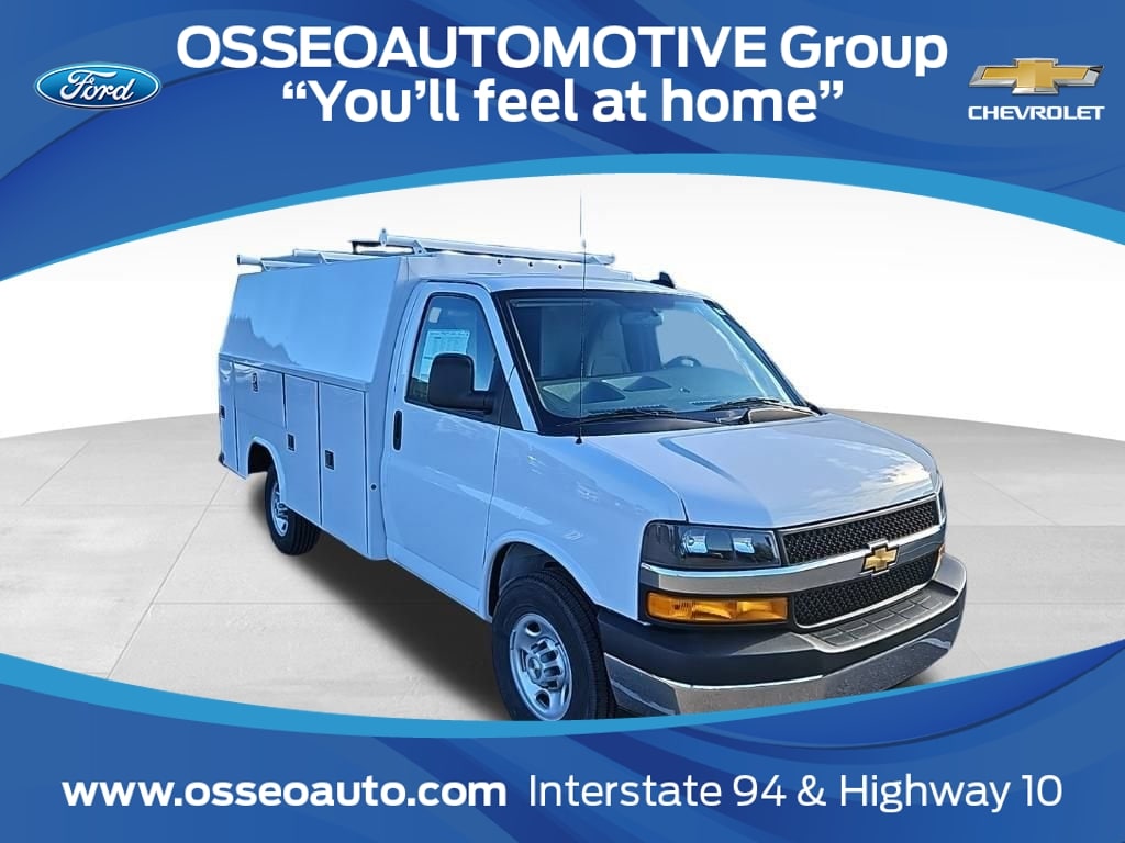 Summit White 2025 Chevrolet Express 3500 Work Van Commercial RWD 8-Speed Automatic 6.6L V8Nels Gunderson Chevrolet is pumped up to offer this good-looking 2025 Chevrolet Express 3500 Work Van in Summit White, beautifully equipped with Chrome Appearance Package (Chrome Grille and Front Chrome Bumper w/Step-Pad), Driver Convenience Package (Tilt Steering Wheel), Power Convenience Package (Power Door Locks w/Lock-Out Protection and Power Windows), Preferred Equipment Group 1WT, 2 Speakers, 3.42 Rear Axle Ratio, 4-Wheel Disc Brakes, ABS brakes, Air Conditioning, AM/FM radio, Black Power-Adjustable Heated Outside Mirrors, Cruise Control, Delay-off headlights, Driver & Front Passenger High-Back Bucket Seats, Driver & Front Passenger Vinyl Visors, Driver door bin, Driver's Seat Mounted Armrest, Dual front impact airbags, Dual front side impact airbags, Electronic Stability Control, Engine Cover Console w/Swing-Out Storage Bin, Exterior Parking Camera Rear, Front anti-roll bar, Front Bucket Seats, Front wheel independent suspension, Fully automatic headlights, Heavy-Duty Locking Rear Differential, Inside Rearview Mirror w/Rr Vision Camera Display, Low tire pressure warning, Occupant sensing airbag, Outside Temperature Display, Overhead airbag, Passenger cancellable airbag, Passenger door bin, Passenger seat mounted armrest, Power steering, Radio: AM/FM Stereo w/MP3 Player & Digital Clock, Reclining High-Back Bucket Seats w/Inboard Armrests, Remote Keyless Entry, Single Rear Wheel Configuration, Tachometer, Theft Alarm Notification, Traction control, Trailering Wire Harness, Trip computer, Variably intermittent wipers, Vinyl Seat Trim, Voltmeter, and Wheels: 16 x 6.5 8-Lug Painted Steel HD (4) Backup Camera Bluetooth.