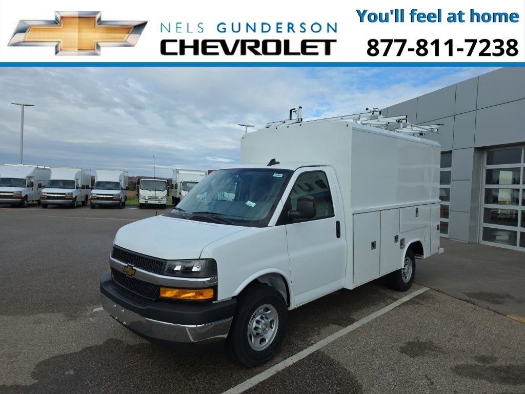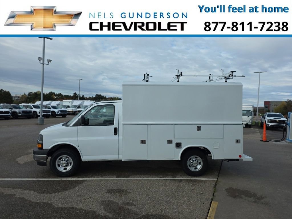 Summit White 2025 Chevrolet Express 3500 Work Van Commercial RWD 8-Speed Automatic 6.6L V8Nels Gunderson Chevrolet is delighted to offer this attractive 2025 Chevrolet Express 3500 Work Van in Summit White, beautifully equipped with Chrome Appearance Package (Chrome Grille and Front Chrome Bumper w/Step-Pad), Driver Convenience Package (Tilt Steering Wheel), Power Convenience Package (Power Door Locks w/Lock-Out Protection and Power Windows), Preferred Equipment Group 1WT, 2 Speakers, 3.42 Rear Axle Ratio, 4-Wheel Disc Brakes, ABS brakes, Air Conditioning, AM/FM radio, Black Power-Adjustable Heated Outside Mirrors, Cruise Control, Delay-off headlights, Driver & Front Passenger High-Back Bucket Seats, Driver & Front Passenger Vinyl Visors, Driver door bin, Driver's Seat Mounted Armrest, Dual front impact airbags, Dual front side impact airbags, Electronic Stability Control, Engine Cover Console w/Swing-Out Storage Bin, Exterior Parking Camera Rear, Front anti-roll bar, Front Bucket Seats, Front wheel independent suspension, Fully automatic headlights, Heavy-Duty Locking Rear Differential, Inside Rearview Mirror w/Rr Vision Camera Display, Low tire pressure warning, Occupant sensing airbag, Outside Temperature Display, Overhead airbag, Passenger cancellable airbag, Passenger door bin, Passenger seat mounted armrest, Power steering, Radio: AM/FM Stereo w/MP3 Player & Digital Clock, Reclining High-Back Bucket Seats w/Inboard Armrests, Remote Keyless Entry, Single Rear Wheel Configuration, Tachometer, Theft Alarm Notification, Traction control, Trailering Wire Harness, Trip computer, Variably intermittent wipers, Vinyl Seat Trim, Voltmeter, and Wheels: 16 x 6.5 8-Lug Painted Steel HD (4) Backup Camera Bluetooth. Recent Arrival!