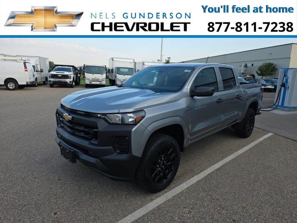 Sterling Gray Metallic 2026 Chevrolet Colorado Work Truck Commercial 4WD 8-Speed Automatic 2.7L I4 Turbocharged DOHC 16V LEV3-ULEV50 310hp 4WD.Nels Gunderson Chevrolet is honored to offer this good-looking 2026 Chevrolet Colorado Work Truck in Sterling Gray Metallic, beautifully equipped with Advanced Trailering Package (Automatic Locking Rear Differential, Blind Zone Steering Assist w/Trailering, and Trailering App), Heavy-Duty Trailering Package (Integrated Trailer Brake Controller), Preferred Equipment Group 4WT (Automatic Emergency Braking, Chevy Safety Assist, Following Distance Indicator, Forward Collision Alert, Front Pedestrian & Bicyclist Braking, IntelliBeam Automatic High Beam On/Off, and Lane Keep Assist w/Lane Departure Warning), WT Convenience Package II (4-Spoke Wrapped Steering Wheel, 8-Way Power Driver Seat Adjuster, EZ-Lift & Lower Tailgate, Power Driver Lumbar Control Seat Adjuster, StowFlex Tailgate Storage Compartment, and Tailgate Keyed Cylinder Lock), WT Custom Package (Black Nameplates (LPO) and Wheels: 18 x 8.5 Black High Gloss Aluminum), 4WD, 220 Amp Alternator, 3.42 Rear Axle Ratio, 4-Way Manual Passenger Seat Adjuster, 4-Wheel Disc Brakes, 6 Speakers, 6-Speaker Audio System Feature, 6-Way Manual Driver Seat Adjuster, ABS brakes, Air Conditioning, AM/FM radio: SiriusXM with 360L, Apple CarPlay/Android Auto, Auto High-beam Headlights, Brake assist, Cargo Area Lamps (LPO), Cloth Seat Trim, Delay-off headlights, Driver door bin, Driver vanity mirror, Dual front impact airbags, Dual front side impact airbags, Electronic Stability Control, Emergency communication system: OnStar, Front anti-roll bar, Front Bucket Seats, Front Center Armrest, Front License Plate Kit, Front wheel independent suspension, Heated door mirrors, Low tire pressure warning, Navigation System, Occupant sensing airbag, Overhead airbag, Panic alarm, Passenger door bin, Passenger vanity mirror, Power door mirrors, Power steering, Power windows, Radio data system, Radio: 11.3 Diagonal Advanced Color LCD Display, Rear step bumper, Rear window defroster, Remote keyless entry, Remote Start Kit w/2 Key Fobs (LPO), Security system, SiriusXM w/360L Trial Subscription, Speed control, Speed-sensing steering, Split folding rear seat, Steering Wheel Mounted Audio Controls, Steering wheel mounted audio controls, Tachometer, Tilt steering wheel, Traction control, Trip computer, Variably intermittent wipers, Wheels: 17 x 8 Ultra Silver Metallic Steel, and Wireless Phone Projection Backup Camera Bluetooth. Price includes: $1000 - Customer Cash. Exp. 11/03/2025