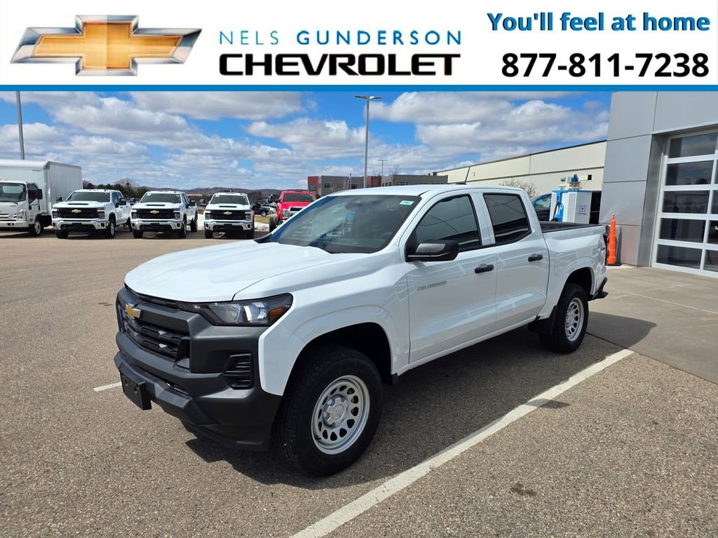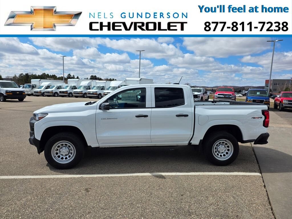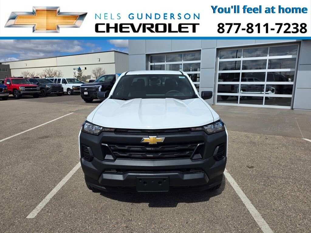 Summit White 2026 Chevrolet Colorado Work Truck Commercial 4WD 8-Speed Automatic 2.7L I4 Turbocharged DOHC 16V LEV3-ULEV50 310hp 4WD.Nels Gunderson Chevrolet is pleased to offer this charming 2026 Chevrolet Colorado Work Truck in Summit White, beautifully equipped with Advanced Trailering Package (Automatic Locking Rear Differential, Blind Zone Steering Assist with Trailering, and Trailering App), Heavy-Duty Trailering Package (Integrated Trailer Brake Controller), Preferred Equipment Group 4WT (Automatic Emergency Braking, Chevy Safety Assist, Following Distance Indicator, Forward Collision Alert, Front Pedestrian and Bicyclist Braking, IntelliBeam Automatic High Beam on/Off, and Lane Keep Assist with Lane Departure Warning), WT Convenience Package II (4-Spoke Wrapped Steering Wheel, 8-Way Power Driver Seat Adjuster, EZ-Lift and Lower Tailgate, Power Driver Lumbar Control Seat Adjuster, StowFlex Tailgate Storage Compartment, and Tailgate Keyed Cylinder Lock), 4WD, 220 Amp Alternator, 3.42 Rear Axle Ratio, 4-Way Manual Passenger Seat Adjuster, 4-Wheel Disc Brakes, 6 Speakers, 6-Speaker Audio System Feature, 6-Way Manual Driver Seat Adjuster, ABS brakes, Air Conditioning, AM/FM radio: SiriusXM with 360L, Apple CarPlay/Android Auto, Auto High-beam Headlights, Brake assist, Cargo Area Lamps, Cloth Seat Trim, Delay-off headlights, Driver door bin, Driver vanity mirror, Dual front impact airbags, Dual front side impact airbags, Electronic Stability Control, Emergency communication system: OnStar, Front anti-roll bar, Front Bucket Seats, Front Center Armrest, Front License Plate Kit, Front wheel independent suspension, Heated door mirrors, Low tire pressure warning, Navigation System, Occupant sensing airbag, Overhead airbag, Panic alarm, Passenger door bin, Passenger vanity mirror, Power door mirrors, Power steering, Power windows, Radio data system, Radio: 11.3 Diagonal Advanced Color LCD Display, Rear step bumper, Rear window defroster, Remote keyless entry, Remote Start Kit with 2 Key Fobs, Security system, SiriusXM with 360L Trial Subscription, Speed control, Speed-sensing steering, Split folding rear seat, Steering Wheel Mounted Audio Controls, Steering wheel mounted audio controls, Tachometer, Tilt steering wheel, Traction control, Trip computer, Variably intermittent wipers, Wheels: 17 x 8 Ultra Silver Metallic Steel, and Wireless Phone Projection Backup Camera Bluetooth. Recent Arrival!Awards:* Car and Driver Editors' ChoiceCar and Driver, January 2017. Price includes: $1000 - Customer Cash. Exp. 04/30/2026