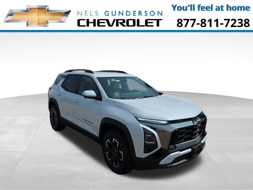 Polar White Tricoat 2026 Chevrolet Equinox ACTIV AWD 8-Speed Automatic 1.5L DOHC AWD.Nels Gunderson Chevrolet is honored to offer this terrific 2026 Chevrolet Equinox ACTIV in Polar White Tricoat, beautifully equipped with Convenience Package III (Front Passenger 2-Way Power Lumbar Seat Adjuster, Front Passenger 8-Way Power Seat Adjuster, Heated Rear Outboard Seating Positions, Memory Settings, Ventilated Driver Seat, and Ventilated Front Passenger Seat), Floor Liner Package (LPO) (All-Weather Floor Liners (LPO), Cargo Mat, and Second Row All-Weather Mat (LPO)), Preferred Equipment Group KDZ, Safety & Technology Package (Front Fog Lamps, HD Surround Vision, Rear Pedestrian Alert, and Traffic Sign Recognition), AWD, 2-Way Power Driver Lumbar Control Seat Adjuster, 3.47 Final Drive Axle Ratio, 4-Wheel Disc Brakes, 6 Speakers, ABS brakes, Air Conditioning, Alloy wheels, AM/FM radio: SiriusXM, Auto High-beam Headlights, Automatic temperature control, Brake assist, Bumpers: body-color, Compass, Delay-off headlights, Driver 8-Way Power Seat Adjuster, Driver door bin, Driver vanity mirror, Dual front impact airbags, Dual front side impact airbags, Electronic Stability Control, Emergency communication system: OnStar and Chevrolet connected services capable, Four wheel independent suspension, Front anti-roll bar, Front Bucket Seats, Front Center Armrest, Front dual zone A/C, Front Passenger 4-Way Manual Seat Adjuster, Front reading lights, Fully automatic headlights, Garage door transmitter, Heated door mirrors, Heated Driver & Front Passenger Seats, Heated front seats, Heated steering wheel, Illuminated entry, Low tire pressure warning, Navigation System, Occupant sensing airbag, Outside temperature display, Overhead airbag, Overhead console, Panic alarm, Passenger door bin, Passenger vanity mirror, Power door mirrors, Power driver seat, Power Liftgate, Power steering, Power windows, Premium audio system: Chevrolet Infotainment 3 Plus, Radio data system, Radio: 11.3 Diagonal Advanced Color LCD Display, Rain sensing wipers, Rear anti-roll bar, Rear Camera Mirror Washer, Rear reading lights, Rear seat center armrest, Rear window defroster, Rear window wiper, Remote keyless entry, Security system, SiriusXM w/360L Trial Subscription, Speed control, Speed-sensing steering, Split folding rear seat, Spoiler, Steering wheel mounted audio controls, Sueded Microfiber Seat Trim, Tachometer, Telescoping steering wheel, Tilt steering wheel, Traction control, Trip computer, Variably intermittent wipers, and Wheels: 17 Dark Android Machined-Face Aluminum Backup Camera Bluetooth. 24/29 City/Highway MPG