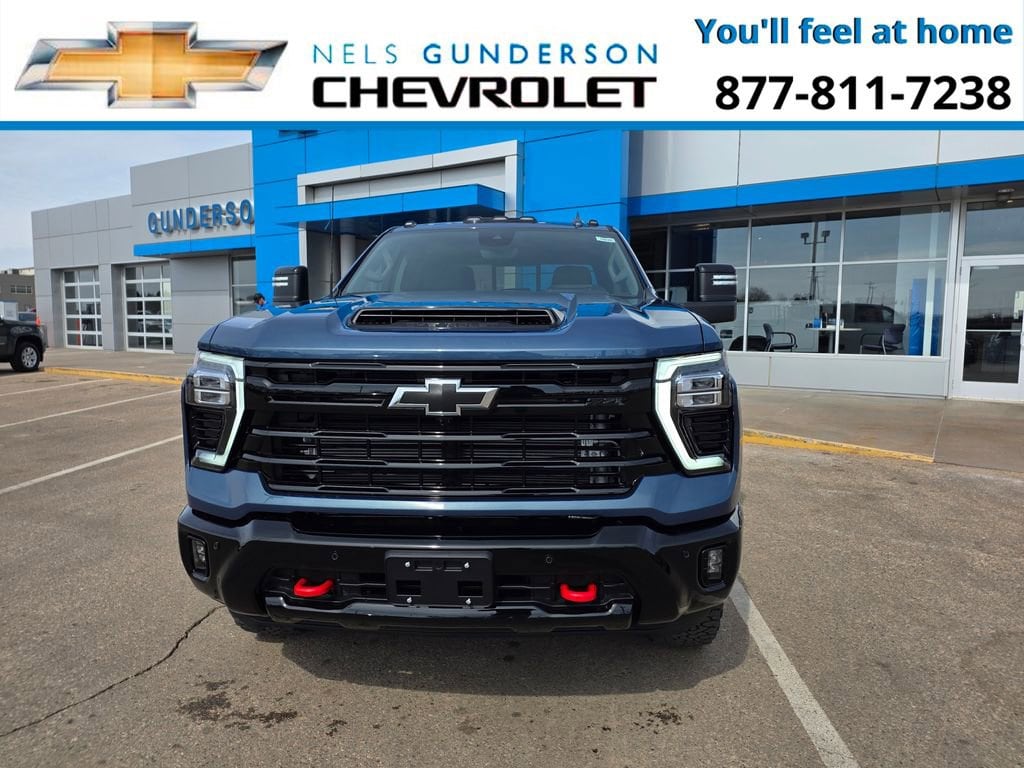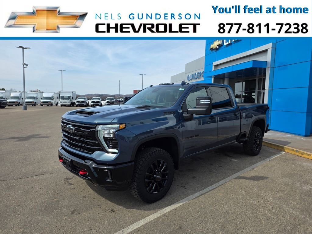 Nels Gunderson Chevrolet is pumped up to offer this stout 2026 Chevrolet Silverado 2500HD LTZ in Lakeshore Blue Metallic, beautifully equipped with Gooseneck/5th Wheel Prep Package, Hitch Package, LTZ Convenience Package (2 Charge/Data USB Ports Inside Center Console, BOSE Premium 7-Speaker Sound System, Floor-Mounted Center Console, Front Bucket Seats, LED Cargo Area Lighting, Ventilated Driver and Front Passenger Seats, and Wireless Charging), LTZ Convenience Package II (Adaptive Cruise Control, Heated 2nd Row Outboard Seats, Power Sliding Rear Window with Defogger, and Universal Home Remote), Preferred Equipment Group 1LZ (10-Way Power Driver Seat Adjuster with Lumbar, 10-Way Power Passenger Seat Adjuster with Lumbar, 120-Volt Bed Mounted Power Outlet, 120-Volt Interior Power Outlet, 170 Amp Alternator, 6-Speaker Audio System, Auto-Dimming Inside Rear-View Mirror, Bluetooth® For Phone, Chevrolet Connected Access Capable, Chrome Door Handles, Chrome Mirror Caps, Color-Keyed Carpeting Floor Covering, Compass, Deep-Tinted Glass, Driver Memory, Durabed Pickup Bed, Electric Rear-Window Defogger, Electronic Cruise Control with Set and Resume Speed, EZ Lift Power Lock and Release Tailgate, Front 40/20/40 Split-Bench Seats with Lockable Storage, Front LED Fog Lamps, Front Rain-Sensing Wipers, Front Rubberized Vinyl Floor Mats, HD Rear Vision Camera, Heated Driver and Front Outboard Passenger Seating, Heated Steering Wheel, Hitch Guidance with Hitch View, in-Vehicle Trailering App System, Keyless Open and Start, Manual Tilt and Telescoping Steering Column, OnStar Services Capable, Perforated Leather-Appointed Front Outboard Seat Trim, Power Door Locks, Power Front Windows with Driver Express Up/Down, Power Front Windows with Passenger Express Up/Down, Power Rear Windows with Express Down, Push Button Start, Rear Rubberized Vinyl Floor Mats, Rear Wheelhouse Liners, Remote Vehicle Starter System, SiriusXM with 360L Trial Subscription, Standard Tailgate, Steering Wheel Audio Controls, Unauthorized Entry Theft-Deterrent System, Wheels: 18 Machined Aluminum with Silver Painted Accents, Wi-Fi Hotspot Capable, Wireless Phone Projection, and Wrapped Steering Wheel), Safety Package (Bed View Camera with Two Trailer Camera Provisions, HD Surround Vision, Rear Cross Traffic Alert, Safety Alert Seat, Trailer Camera Provisions, Trailer Side Blind Zone Alert, and Ultrasonic Front and Rear Park Assist), Suspension Package, Technology Package (15 Diagonal Multicolor Head-Up Display and Rear Camera Mirror), Trail Boss Package (Black Chevytec Spray-on Bedliner, Black Grille Bar with Chevy Black Bow Tie, Front Frame-Mounted Red Recovery Hooks, High Gloss Black Door Handles, High Gloss Black Mirror Caps, and Wheels: 20 High Gloss Black Painted), Up-Level Rear Seat with Storage Package, Z71 Off-Road Package (Hill Descent Control and Off-Road Suspension), 10-Speed Automatic, 4WD, Black Leather, 4-Wheel Disc Brakes, 6 Speakers, 720 Cold-Cranking Amps Heavy-Duty Battery, ABS brakes, Air Conditioning, Alloy wheels, AM/FM radio: SiriusXM with 360L, Apple CarPlay/Android Auto, Auto High-beam Headlights, Auto-dimming door mirrors, Auto-dimming Rear-View mirror, Automatic temperature control, Body-Color Front Bumper, Body-Color Rear Bumper, Brake assist, Bumpers: chrome, Delay-off headlights, Driver door bin, Driver vanity mirror, Dual 220-Amp Primary/170-Amp Auxiliary Alternators, Dual front impact airbags, Dual front side impact airbags, Electronic Stability Control, Emergency communication system: OnStar, Engine Block Heater, Exhaust Brake, Front anti-roll bar, Front Center Armrest w/Storage, Front dual zone A/C, Front fog lights, Front License Plate Kit, Front reading lights, Front wheel independent suspension, Fully automatic headlights, Heated d Price