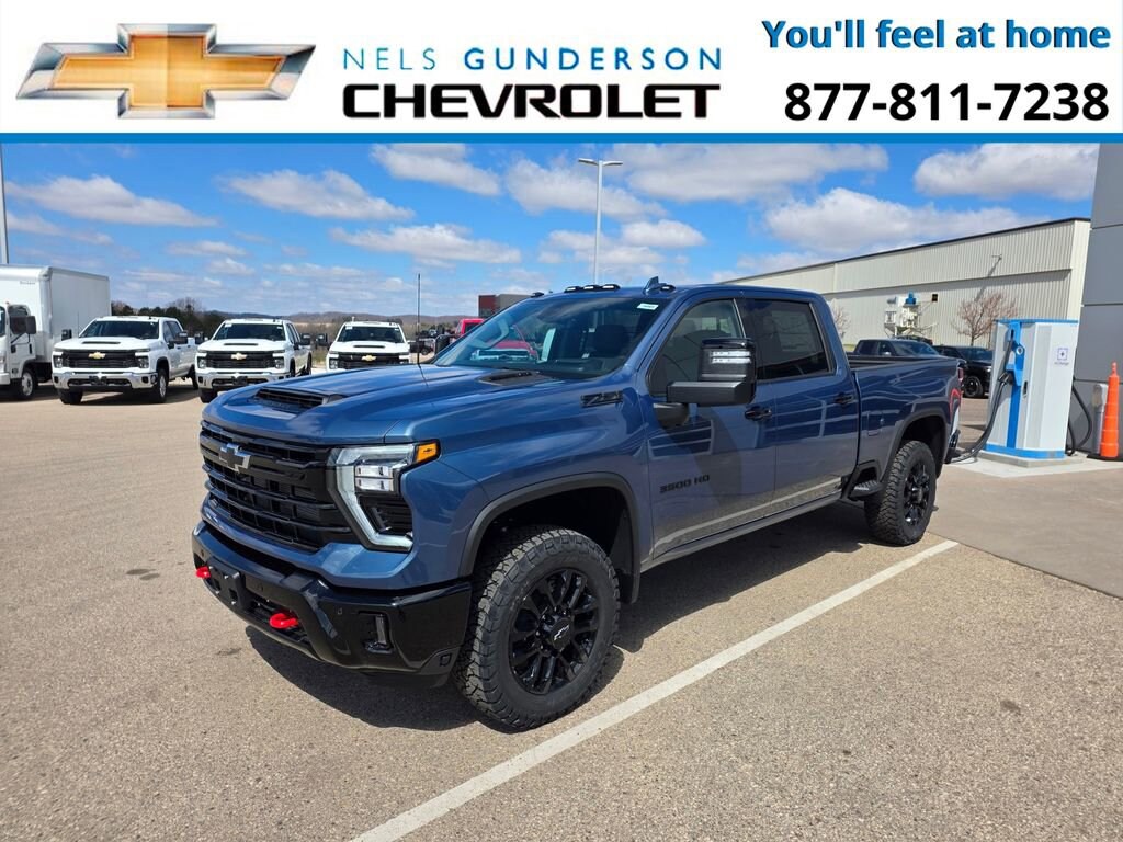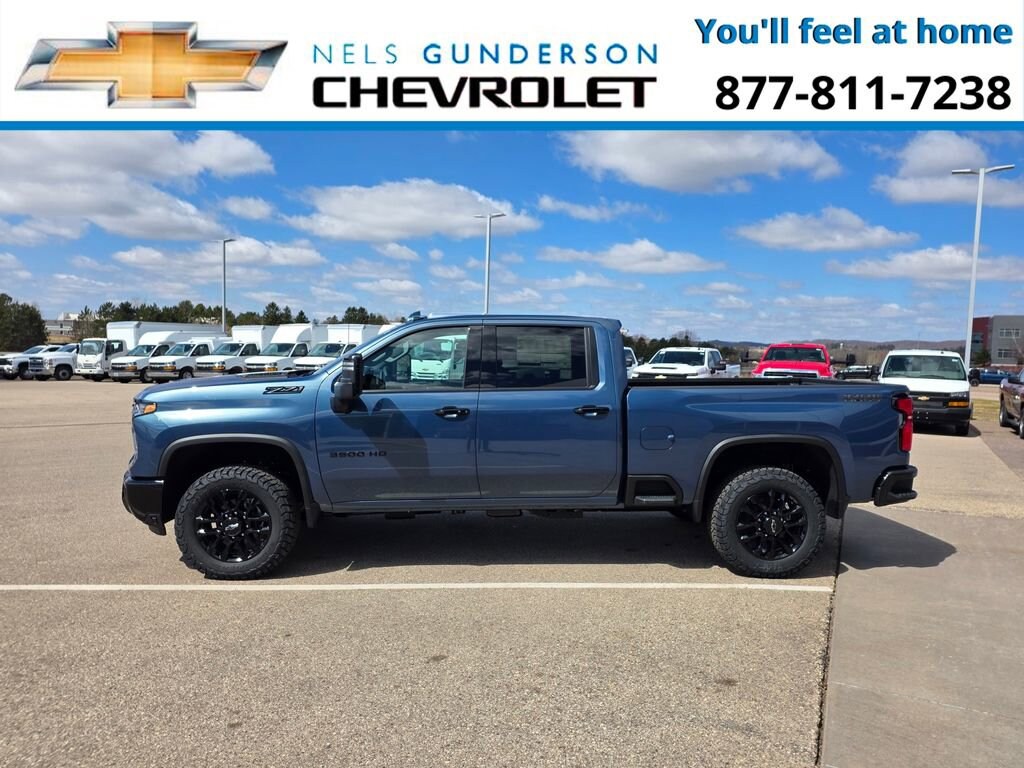 Nels Gunderson Chevrolet is excited to offer this dependable 2026 Chevrolet Silverado 3500HD LTZ in Lakeshore Blue Metallic, beautifully equipped with Gooseneck/5th Wheel Prep Package (Chevytec Spray-on Black Bedliner), Hitch Package, LTZ Convenience Package (2 Charge/Data USB Ports Inside Center Console, Bose Premium 7-Speaker Sound System, Floor-Mounted Center Console, Front Bucket Seats, LED Cargo Area Lighting, Ventilated Driver and Front Passenger Seats, and Wireless Charging), LTZ Convenience Package II (Adaptive Cruise Control, Heated 2nd Row Outboard Seats, Power Sliding Rear Window with Defogger, and Universal Home Remote), Preferred Equipment Group 1LZ (10-Way Power Driver Seat Adjuster with Lumbar, 10-Way Power Passenger Seat Adjuster with Lumbar, 120-Volt Bed Mounted Power Outlet, 120-Volt Interior Power Outlet, 170 Amp Alternator, 6-Speaker Audio System Feature, Auto-Dimming Inside Rear-View Mirror, Bluetooth® For Phone, Chevrolet Connected Access Capable, Chrome Door Handles, Chrome Mirror Caps, Color-Keyed Carpeting Floor Covering, Compass Located in Instrument Cluster, Deep-Tinted Glass, Driver Memory, Durabed Pickup Bed, Electric Rear-Window Defogger, EZ Lift Power Lock and Release Tailgate, Front 40/20/40 Split-Bench Seats with Lockable Storage, Front LED Fog Lamps, Front Rain-Sensing Wipers, Front Rubberized Vinyl Floor Mats, HD Rear Vision Camera, Heated Driver and Front Outboard Passenger Seats, Heated Steering Wheel, Hitch Guidance with Hitch View, in-Vehicle Trailering App System, Keyless Open and Start, Manual Tilt-Wheel/Telescoping Steering Column, OnStar Services Capable, Perforated Leather-Appointed Front Outboard Seat Trim, Power Door Locks, Power Front Windows with Driver Express Up/Down, Power Front Windows with Passenger Express Up/Down, Power Rear Windows with Express Down, Push Button Start, Rear Rubberized-Vinyl Floor Mats, Remote Vehicle Starter System, SiriusXM with 360L Trial Subscription, Standard Tailgate, Steering Wheel Audio Controls, Steering Wheel Mounted Electronic Cruise Control, Unauthorized Entry Theft-Deterrent System, Wi-Fi Hotspot Capable, and Wrapped Steering Wheel), Safety Package (Bed View Camera with Two Trailer Camera Provisions, HD Surround Vision, Rear Cross Traffic Alert, Safety Alert Seat, Trailer Camera Provisions, Trailer Side Blind Zone Alert, and Ultrasonic Front and Rear Park Assist), Snow Plow Prep/Camper Package (220 Amp Alternator), Suspension Package, Technology Package (Auto-Dimming Inside Rearview Mirror with Camera and Multicolor 15 Diagonal Head-Up Display), Trail Boss Package (Black Beltline Moldings, Front Frame-Mounted Red Recovery Hooks, High Gloss Black Door Handles, High Gloss Black Mirror Caps, and Wheels: 20 High-Gloss Black Painted), Up-Level Rear Seat with Storage Package, Z71 Off-Road Package (Hill Descent Control), 10-Speed Automatic, 4WD, Jet Black Leather, 4-Wheel Disc Brakes, 6 Speakers, ABS brakes, Air Conditioning, Alloy wheels, AM/FM radio: SiriusXM with 360L, Apple CarPlay/Android Auto, Auto High-beam Headlights, Auto-dimming door mirrors, Auto-dimming Rear-View mirror, Automatic temperature control, Body-Color Front Bumper, Body-Color Rear Bumper, Brake assist, Bumpers: chrome, Compass, Delay-off headlights, Driver door bin, Driver vanity mirror, Dual 220-Amps Primary and 170-Amps Auxiliary Alternators, Dual front impact airbags, Dual front side impact airbags, Electronic Stability Control, Emergency communication system, Engine Block Heater, Exhaust Brake, Front anti-roll bar, Front Center Armrest w/Storage, Front dual zone A/C, Front fog lights, Front License Plate Kit, Front reading lights, Front wheel independent suspension, Fully automatic headlights, Heated door mirrors, Heated front seats, Heated steering wheel, Heav Pric