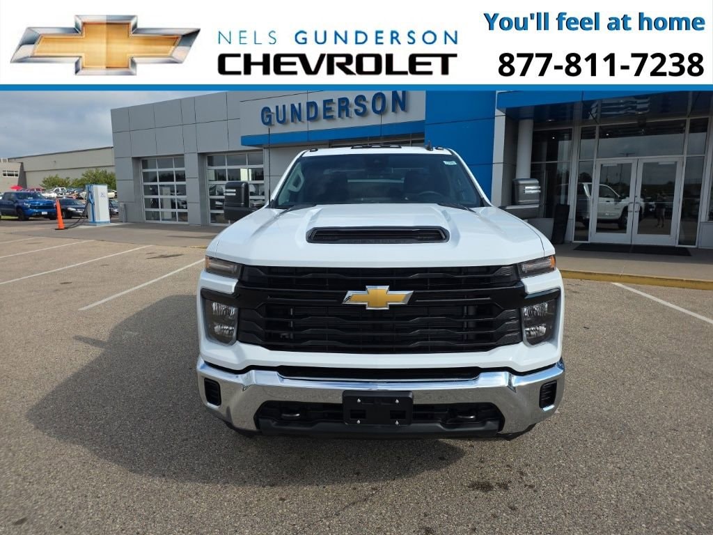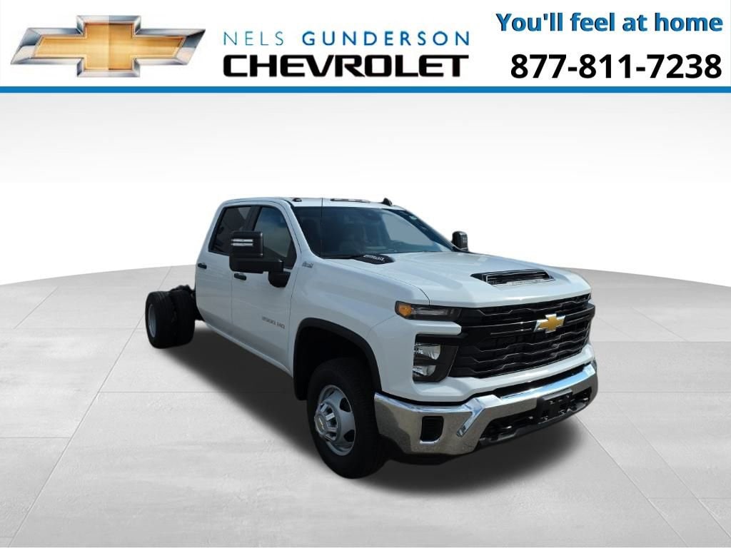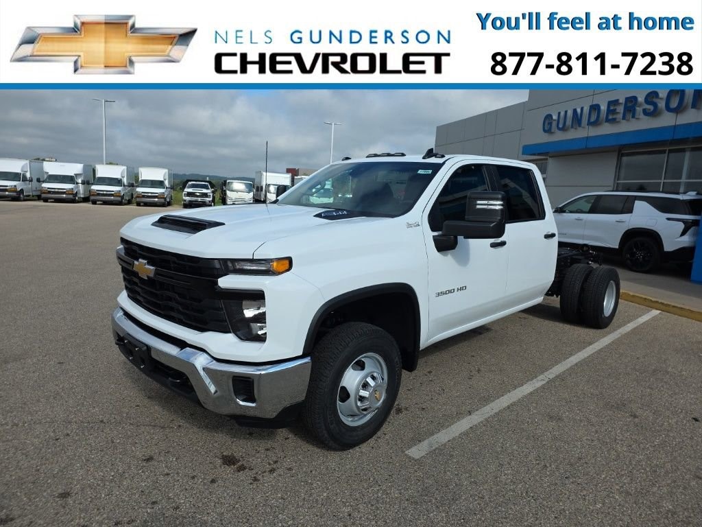 Summit White 2026 Chevrolet Silverado 3500HD Work Truck Commercial 4WD 10-Speed Automatic 6.6L V8 10-Speed Automatic, 4WD, Jet Black Vinyl.Nels Gunderson Chevrolet is very proud to offer this dependable 2026 Chevrolet Silverado 3500HD Work Truck in Summit White, beautifully equipped with Preferred Equipment Group 1WT (170 Amp Alternator, 2-Speed Electronic Shift Transfer Case, 3.5 Diagonal Monochromatic Display DIC, Black Front Bumper, Black Mirror Caps, Bluetooth® For Phone, Compass Located In Instrument Cluster, High-Visibility Molded in Black Outside Mirrors, Manual Tilt-Wheel Steering Column, Power Rear Windows w/Express Down, Rear 60/40 Folding Bench Seat (Folds Up), Rubberized-Vinyl Floor Covering, Solar Absorbing Tinted Glass, and Steering Wheel Mounted Electronic Cruise Control), Snow Plow Prep Package (220 Amp Alternator), Suspension Package, WT Convenience Package (Deep-Tinted Glass and Electric Rear-Window Defogger), 10-Speed Automatic, 4WD, Jet Black Vinyl, 120-Volt (400 Watts) Interior Power Outlet, 17 Painted Steel Wheels, 2-Speed Active Electronic AutoTrac Transfer Case, 3.73 Rear Axle Ratio, 4-Way Manual Driver Seat Adjuster, 4-Way Manual Passenger Seat Adjuster, 4-Wheel Disc Brakes, 6 Speakers, 6-Speaker Audio System Feature, 700 Cold-Cranking Amps/70 Amp-hr Auxiliary Battery, ABS brakes, Air Conditioning, AM/FM radio, Auto High-beam Headlights, Brake assist, Compass, Delay-off headlights, Driver door bin, Dual front impact airbags, Dual front side impact airbags, Dual Rear USB Ports (Charge Only), Dual rear wheels, Electronic Stability Control, Emergency communication system, Front 40/20/40 Split-Bench Seat, Front anti-roll bar, Front Center Armrest w/Storage, Front Chrome Bumper, Front Grille Bar w/Black Mesh Inserts, Front License Plate Kit, Front reading lights, Front wheel independent suspension, Fully automatic headlights, Heavy-Duty 80 Amp-Hr Battery, Illuminated entry, Low tire pressure warning, Manual Tilt Inside Rearview Mirror, Occupant sensing airbag, OnStar Services Capable, Outside temperature display, Overhead airbag, Overhead console, Panic alarm, Passenger door bin, Passenger vanity mirror, Power steering, Power windows, Premium audio system: Chevrolet Infotainment System 3, Radio: Chevrolet Infotainment 3 System, Rear reading lights, Remote keyless entry, Speed control, Split folding rear seat, Tachometer, Tilt steering wheel, Traction control, Trip computer, Upfitter Switch Kit (5), Variably intermittent wipers, Vinyl Seat Trim, and Voltmeter Backup Camera Bluetooth. Price includes: $500 - Customer Cash. Exp. 11/03/2025