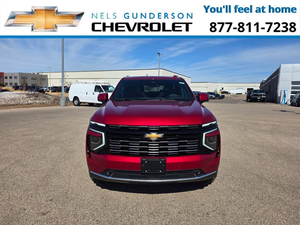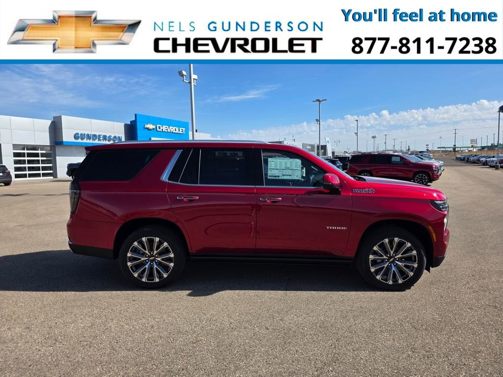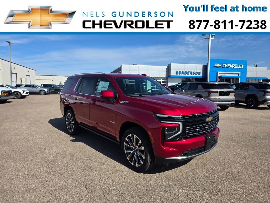 Radiant Red Tintcoat 2026 Chevrolet Tahoe High Country 4WD 10-Speed Automatic with Overdrive EcoTec3 6.2L V8 4WD, Jet Black Leather.Nels Gunderson Chevrolet is very proud to offer this fantastic 2026 Chevrolet Tahoe High Country in Radiant Red Tintcoat, beautifully equipped with Advanced Trailering Package (Blind Zone Steering Assist with Trailering, Hitch View with Pan/Zoom Image Adjustment, and Smart Trailer Integration Indicator), High Country Deluxe (Air Ride Adaptive Suspension, Dual-Pane Power Panoramic Sunroof, and Power-Retractable Assist Steps), License Plate Front Mounting Package, Max Trailering Package (2-Speed Active Electronic AutoTrac Transfer Case, Hill Descent Control, and Integrated Trailer Brake Controller), Preferred Equipment Group 3LZ (15 Diagonal Multi-Color Head-Up Display, 1st and 2nd Row Color-Keyed Carpeted Floor Mats, 3-Spoke Wrapped Steering Wheel, 3rd Row 60/40 Power-Folding Split-Bench Seat, Bose 10-Speaker Centerpoint Surround Audio System Feature, Bright Front and Rear Door Sill Plates, Chrome Door Handles with Body-Color Strip, Color-Keyed Carpeting Floor Covering, Dual Exhaust System, Floor Console, Front Bucket Seats, Front LED Fog Lamps, Frontal Driver and Outboard Passenger Airbags, Heated 2nd Row Outboard Seats, Heated Steering Wheel, Inside Rearview Auo-Dimming Rear Camera Mirror, Interior Camera, Key Card, LED Headlamps with LED Daytime Running Lamps, LED Tail Lamps, Magnetic Ride Control Suspension, Memory Settings, Outside Heated Power-Adjustable Mirrors, Power Release 2nd Row Bucket Seats, Power Tilt and Telescopic Steering Column, Rear Power Liftgate, Remote Start, Set of 4 Wheel Locks, SiriusXM with 360L Trial Subscription, Universal Home Remote, Wheels: 22 x 9 Bright Machined Aluminum, and Wireless Phone Charging), Premium Liner Protection Package (3rd Row All-Weather Floor Liners, All-Weather Cargo Mat, and First and Second Rows Premium Floor Liners), 4WD, Jet Black Leather, 10 Speakers, 3.23 Rear Axle Ratio, 3rd row seats: split-bench, 4-Way Power Driver Lumbar Seat Adjuster, 4-Way Power Front Passenger Lumbar Seat Adjuster, 4-Wheel Disc Brakes, 8-Way Power Driver Seat Adjuster, 8-Way Power Front Passenger Seat Adjuster, ABS brakes, Adaptive suspension, Air Conditioning, Alloy wheels, AM/FM radio: SiriusXM with 360L, Apple CarPlay/Android Auto, Auto High-beam Headlights, Auto-dimming door mirrors, Auto-dimming Rear-View mirror, Auto-leveling suspension, Automatic temperature control, Brake assist, Bumpers: body-color, Compass, Delay-off headlights, Driver and Front Passenger Heated and Ventilated Seats, Driver door bin, Driver vanity mirror, Dual front impact airbags, Dual front side impact airbags, Electronic Stability Control, Emergency communication system: OnStar and Chevrolet connected services capable, Exterior Parking Camera Rear, Extra Capacity Cooling System, Four wheel independent suspension, Front anti-roll bar, Front Center Armrest, Front dual zone A/C, Front fog lights, Front reading lights, Fully automatic headlights, Garage door transmitter, Heads-Up Display, Heated door mirrors, Heated Driver and Front Passenger Seats, Heated front seats, Heated rear seats, Heated steering wheel, Illuminated entry, Low tire pressure warning, Memory seat, Navigation system: Google built-in compatibility (select service plan required, terms and limitations apply), Occupant sensing airbag, Outside temperature display, Overhead airbag, Overhead console, Panic alarm, Passenger door bin, Passenger vanity mirror, Perforated Leather Seat Trim, Power door mirrors, Power driver seat, Power Liftgate, Power passenger seat, Power steering, Power windows, Premium audio system: Chevrolet Infotainment 3 Premium, Radio data system, Radio: 17.7 Diagonal Advanced Color LCD Display, Rain sensing wipers, Rear air conditioning, Rear anti-roll bar, Rear reading lights, Rear window defroster, Rear window wiper, Remote keyless entry, Security system, Speed control, Speed-sensing steering, Spl