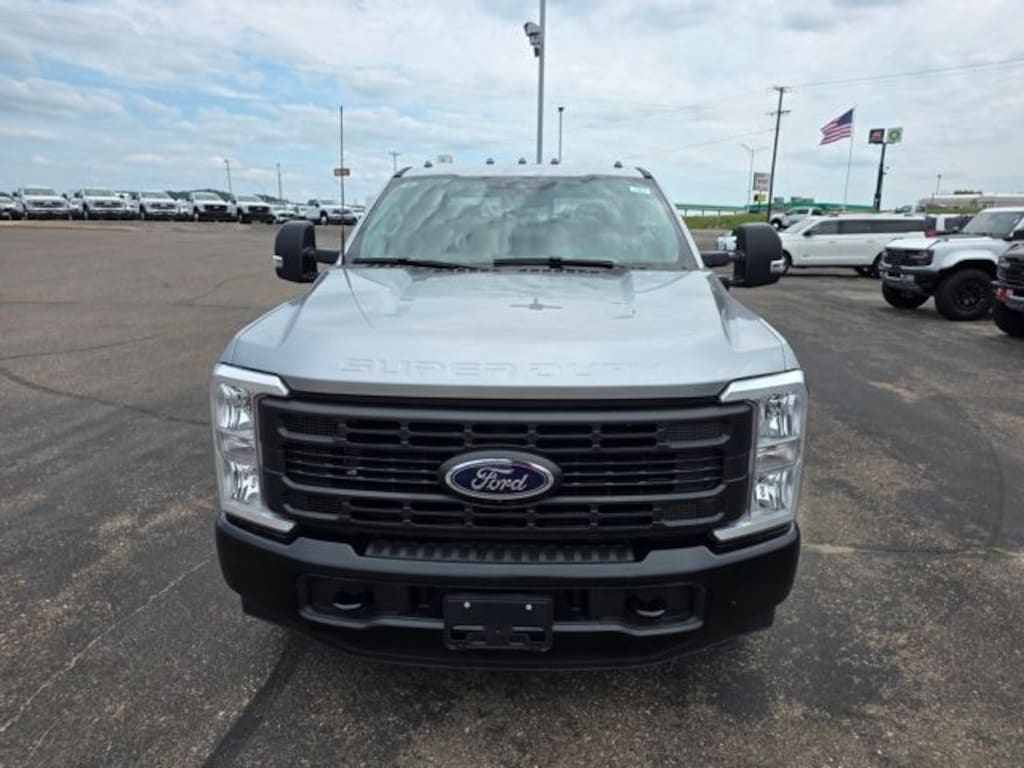 Osseo Ford is pumped up to offer this rock solid 2024 Ford F-350SD XL in Iconic Silver Metallic, beautifully equipped with 360-Degree Camera Package (360-Degree Camera System, BLIS w/Cross-Traffic Alert, LED Center High-Mounted Stop Lamp (CHMSL) Camera, and Rear Parking Sensors), GVWR: 10,600 lb Payload Package, Heavy-Service Front Suspension Package, Order Code 610A, XL Driver Assist Package (Automatic High Beam and Pre-Collision Assist), 17" Argent Painted Steel Wheels, 4-Wheel Disc Brakes, 410 Amp Dual Alternators, 6 Speakers, ABS brakes, Air Conditioning, AM/FM radio, AM/FM Stereo w/MP3 Player, Brake assist, Compass, Delay-off headlights, Dual 68 AH/65 AGM Batteries, Dual front impact airbags, Dual front side impact airbags, Electronic Stability Control, Emergency communication system: SYNC 4 911 Assist, Exterior Parking Camera Rear, Front anti-roll bar, Front Center Armrest w/Storage, Front License Plate Bracket, Front reading lights, Front wheel independent suspension, Front Wheel Well Liners (Pre-Installed), Fully automatic headlights, HD Vinyl 40/20/40 Split Bench Seat, Heated door mirrors, Illuminated entry, LED Box Lighting, LED Roof Clearance Lights, Low tire pressure warning, Outside temperature display, Overhead airbag, Overhead console, Panic alarm, Passenger vanity mirror, Platform Running Boards, Power door mirrors, Power steering, Power windows, Power-Sliding Rear-Window w/Defrost, Privacy Glass, Rapid-Heat Supplemental Cab Heater, Rear reading lights, Rear step bumper, Remote keyless entry, Speed control, Split folding rear seat, Steering wheel mounted audio controls, SYNC 4, Tachometer, Telescoping steering wheel, Tilt steering wheel, Traction control, Trip computer, Turn signal indicator mirrors, and Variably intermittent wipers! Iconic Silver Metallic 2024 Ford F-350SD XL RWD 10-Speed Automatic Power Stroke 6.7L V8 DI 32V OHV Turbodiesel