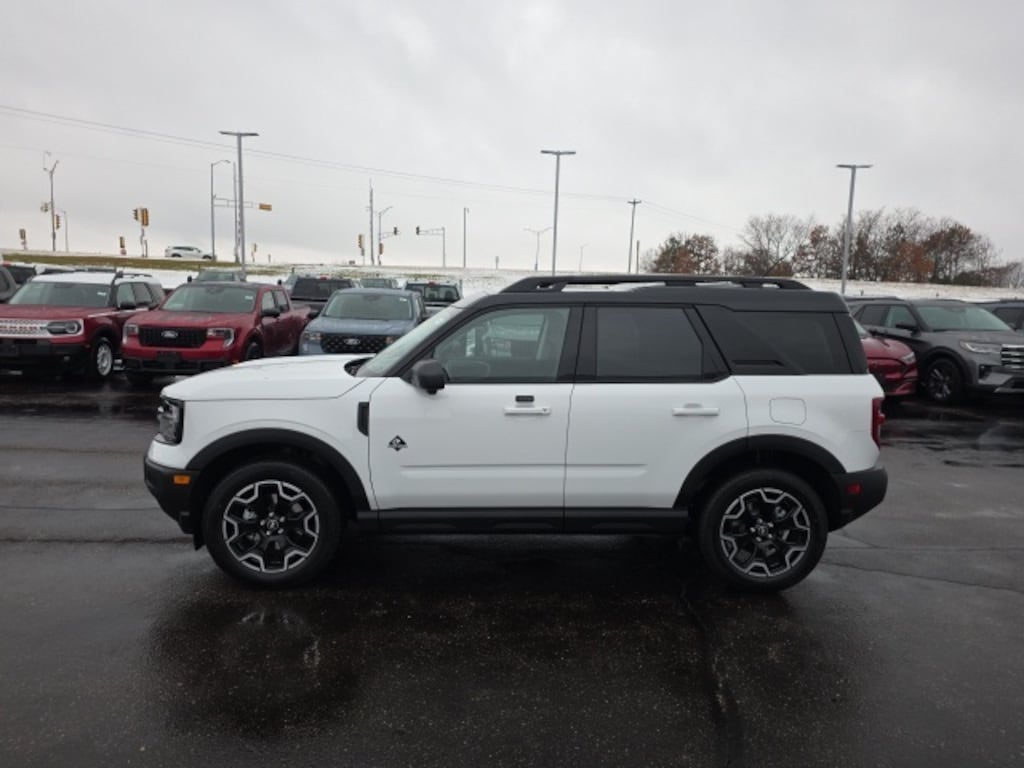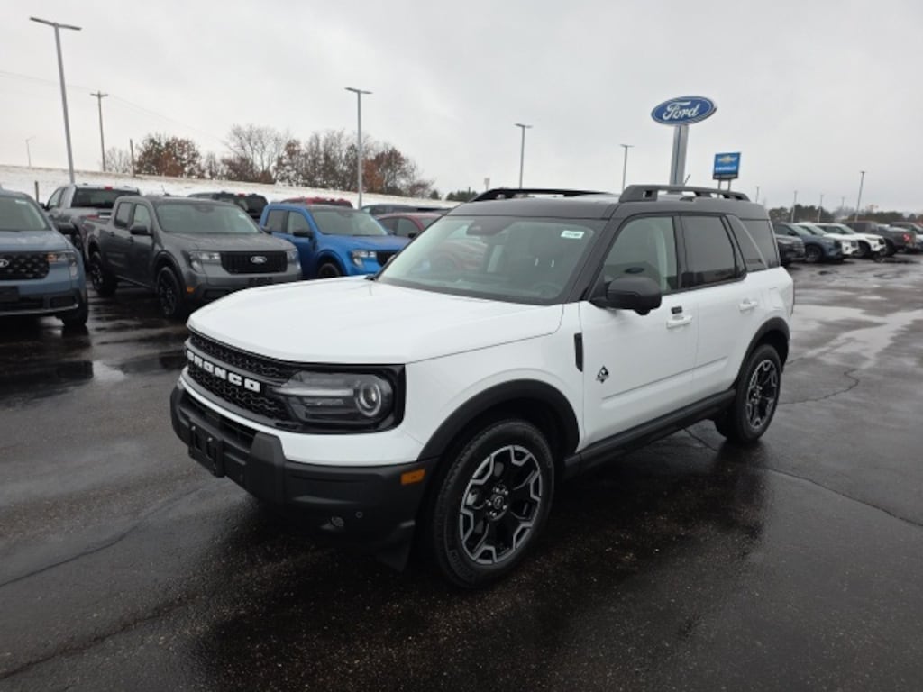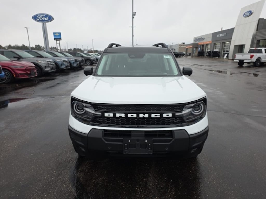Osseo Ford is delighted to offer this gorgeous-looking 2025 Ford Bronco Sport Outer Banks in Oxford White, beautifully equipped with 4-Wheel Disc Brakes, 6 Speakers, ABS brakes, Air Conditioning, Alloy wheels, AM/FM radio: SiriusXM, AM/FM Stereo, Auto High-beam Headlights, Auto-dimming Rear-View mirror, Automatic temperature control, Brake assist, Compass, Delay-off headlights, Driver door bin, Driver vanity mirror, Dual front impact airbags, Dual front side impact airbags, Electronic Stability Control, Emergency communication system: SYNC 4 911 Assist, Four wheel independent suspension, Front anti-roll bar, Front Bucket Seats, Front Center Armrest, Front Driver/Passenger Seat Back Map Pockets, Front dual zone A/C, Front fog lights, Front reading lights, Fully automatic headlights, Garage door transmitter, Heated door mirrors, Heated front seats, Heated steering wheel, Illuminated entry, Knee airbag, Low tire pressure warning, Memory seat, Occupant sensing airbag, Outside temperature display, Overhead airbag, Overhead console, Panic alarm, Passenger door bin, Passenger vanity mirror, Power door mirrors, Power driver seat, Power passenger seat, Power steering, Power windows, Premium Trimmed Front Bucket Seats w/Ebony/Roast, Radio data system, Rain sensing wipers, Rear anti-roll bar, Rear Parking Sensors, Rear reading lights, Rear seat center armrest, Rear window defroster, Rear window wiper, Remote keyless entry, Security system, SiriusXM, Speed control, Speed-sensing steering, Speed-Sensitive Wipers, Split folding rear seat, Steering wheel mounted audio controls, SYNC 4 w/Enhanced Voice Recognition, Tachometer, Telescoping steering wheel, Tilt steering wheel, Traction control, Trip computer, Variably intermittent wipers, and Wheels: 18" Ebony Black-Painted Aluminum! Oxford White 2025 Ford Bronco Sport Outer Banks 4WD 8-Speed Automatic 1.5L EcoBoost