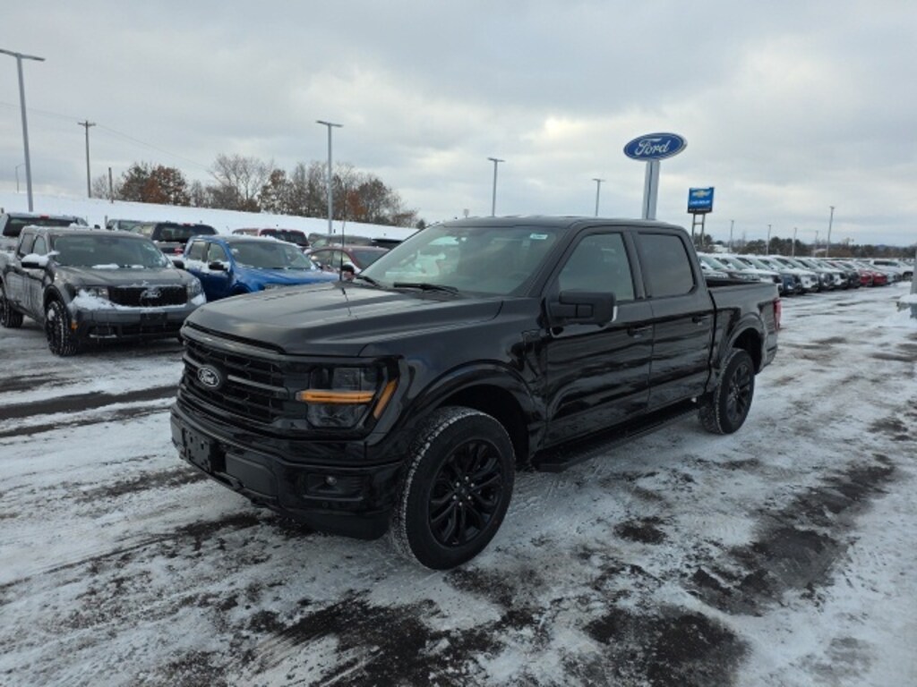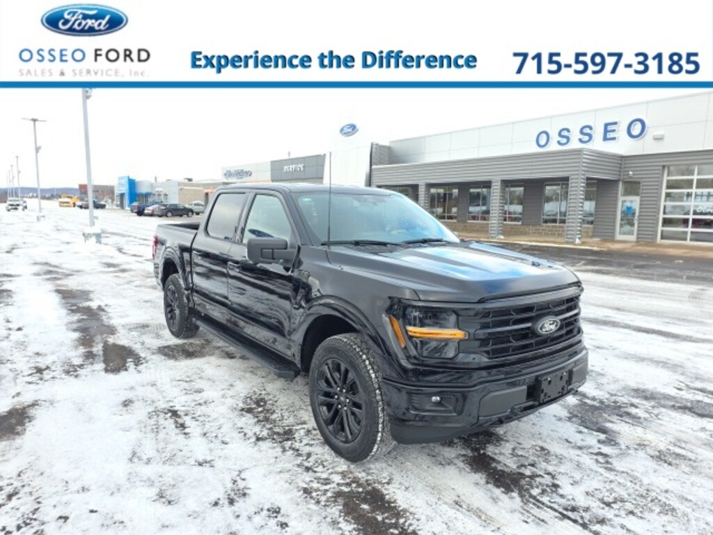 Osseo Ford is proud to offer this hard-working 2025 Ford F-150 XLT in Agate Black Metallic, beautifully equipped with GVWR: 6,650 lbs Payload Package, 4WD, 3.55 Axle Ratio, 4-Wheel Disc Brakes, 6 Speakers, ABS brakes, Air Conditioning, Alloy wheels, AM/FM radio: SiriusXM with 360L, Auto High-beam Headlights, Brake assist, Bumpers: chrome, Chrome wheels, Cloth 40/20/40 Front Seat, Compass, Delay-off headlights, Driver door bin, Driver vanity mirror, Dual front impact airbags, Dual front side impact airbags, Electronic Stability Control, Emergency communication system: SYNC 4 911 Assist, Front anti-roll bar, Front Center Armrest, Front fog lights, Front reading lights, Front wheel independent suspension, Fully automatic headlights, Heated door mirrors, Illuminated entry, Low tire pressure warning, Occupant sensing airbag, Outside temperature display, Overhead airbag, Overhead console, Panic alarm, Passenger door bin, Passenger vanity mirror, Power door mirrors, Power steering, Power windows, Radio data system, Radio: AM/FM Stereo w/SiriusXM 360L, Rear Parking Sensors, Rear reading lights, Rear step bumper, Rear window defroster, Remote keyless entry, Security system, Speed control, Split folding rear seat, Steering wheel mounted audio controls, SYNC 4 w/Enhanced Voice Recognition, Tachometer, Telescoping steering wheel, Tilt steering wheel, Traction control, Trip computer, Variably intermittent wipers, Voltmeter, and Wheels: 18" Chrome-Like PVD! Agate Black Metallic 2025 Ford F-150 XLT 4WD 10-Speed Automatic 2.7L V6 EcoBoost 4WD.