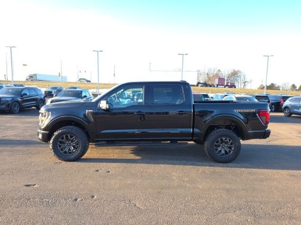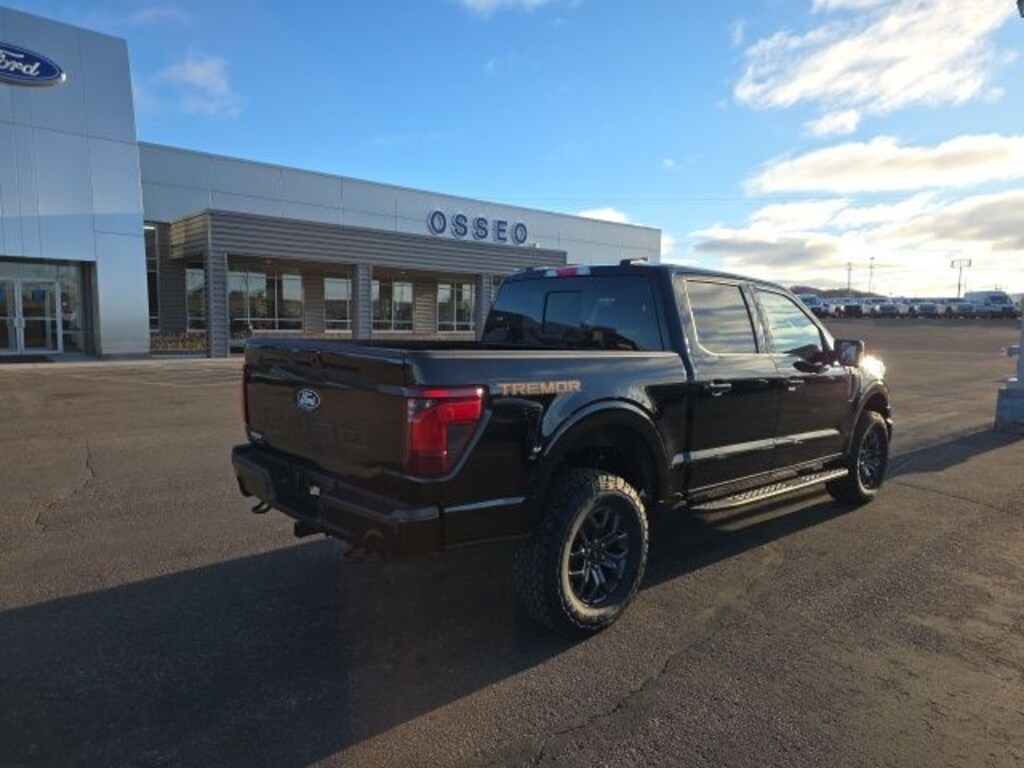 Osseo Ford is excited to offer this rock solid 2025 Ford F-150 Tremor in Agate Black Metallic, beautifully equipped with Bed Utility Package (4 Pickup Box Tie-Down Plates, LED Box Lighting, and Power Tailgate), Equipment Group 401A Standard, GVWR: 7,100 lbs Payload Package, Mobile Office Package (Console Worksurface, Partitioned Lockable Rear Storage, and Wireless Charging), Tow/Haul Package (Integrated Trailer Brake Controller), 4WD, 4-Wheel Disc Brakes, 8 Speakers, ABS brakes, Adjustable pedals, Air Conditioning, Alloy wheels, AM/FM radio: SiriusXM with 360L, Auto High-beam Headlights, Auto-dimming door mirrors, Auto-dimming Rear-View mirror, Automatic temperature control, BlueCruise Equipped (1-Year Plan), Brake assist, Bumpers: body-color, Compass, Delay-off headlights, Driver door bin, Driver vanity mirror, Dual front impact airbags, Dual front side impact airbags, Electronic Locking w/3.73 Axle Ratio, Electronic Stability Control, Emergency communication system: SYNC 4 911 Assist, Front anti-roll bar, Front Bucket Seats, Front Center Armrest, Front dual zone A/C, Front fog lights, Front License Plate Bracket, Front reading lights, Front wheel independent suspension, Fully automatic headlights, Heated door mirrors, Heated front seats, Illuminated entry, Internet access capable: FordPass Connect 5G, Low tire pressure warning, Navigation system: Connected Navigation, Occupant sensing airbag, Outside temperature display, Overhead airbag, Overhead console, Panic alarm, Passenger door bin, Passenger vanity mirror, Power door mirrors, Power driver seat, Power passenger seat, Power steering, Power windows, Radio data system, Radio: B&O Sound System by Bang & Olufsen, Rear reading lights, Rear step bumper, Rear window defroster, Remote keyless entry, Security system, Speed control, Split folding rear seat, Steering wheel mounted audio controls, SYNC 4 w/Enhanced Voice Recognition, Tachometer, Tailgate Step w/Tailgate Work Surface, Telescoping steering wheel, Tilt steering wheel, Traction control, Trip computer, Turn signal indicator mirrors, Unique Sport Cloth 40/Console/40 Power Front Seat, Variably intermittent wipers, Voltmeter, and Wheels: 18" Alloy w/Dark Matte Finish! Agate Black Metallic 2025 Ford F-150 Tremor 4WD 10-Speed Automatic 3.5L V6 EcoBoost 4WD. Price includes: $1000 - Truck Month Retail Bonus Cash. Exp. 03/31/2026 $2000 - Retail Customer Cash. Exp. 03/31/2026