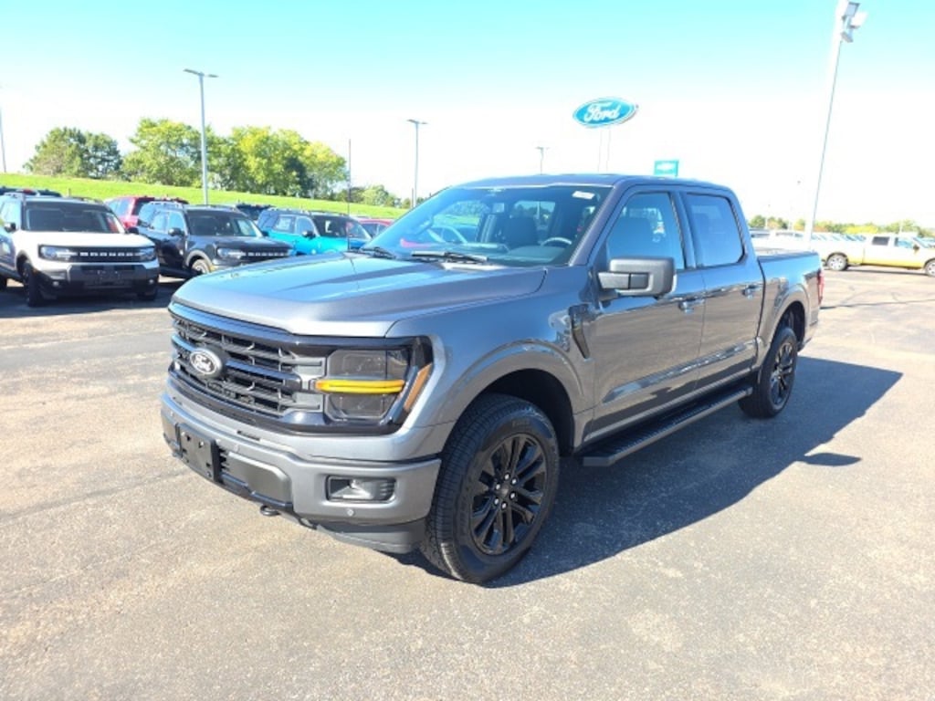 Osseo Ford is pumped up to offer this reliable 2025 Ford F-150 XLT in Carbonized Gray Metallic, beautifully equipped with 4WD, 3.31 Axle Ratio, 4-Wheel Disc Brakes, 6 Speakers, ABS brakes, Air Conditioning, Alloy wheels, AM/FM radio: SiriusXM with 360L, Auto High-beam Headlights, Brake assist, Bumpers: chrome, Chrome wheels, Cloth 40/20/40 Front Seat, Compass, Delay-off headlights, Driver door bin, Driver vanity mirror, Dual front impact airbags, Dual front side impact airbags, Electronic Stability Control, Emergency communication system: SYNC 4 911 Assist, Front anti-roll bar, Front Center Armrest, Front fog lights, Front reading lights, Front wheel independent suspension, Fully automatic headlights, Heated door mirrors, Illuminated entry, Low tire pressure warning, Occupant sensing airbag, Outside temperature display, Overhead airbag, Overhead console, Panic alarm, Passenger door bin, Passenger vanity mirror, Power door mirrors, Power steering, Power windows, Radio data system, Radio: AM/FM Stereo w/SiriusXM 360L, Rear Parking Sensors, Rear reading lights, Rear step bumper, Rear window defroster, Remote keyless entry, Security system, Speed control, Split folding rear seat, Steering wheel mounted audio controls, SYNC 4 w/Enhanced Voice Recognition, Tachometer, Telescoping steering wheel, Tilt steering wheel, Traction control, Trip computer, Variably intermittent wipers, Voltmeter, and Wheels: 18" Chrome-Like PVD! Carbonized Gray Metallic 2025 Ford F-150 XLT 4WD 10-Speed Automatic 5.0L V8 4WD.