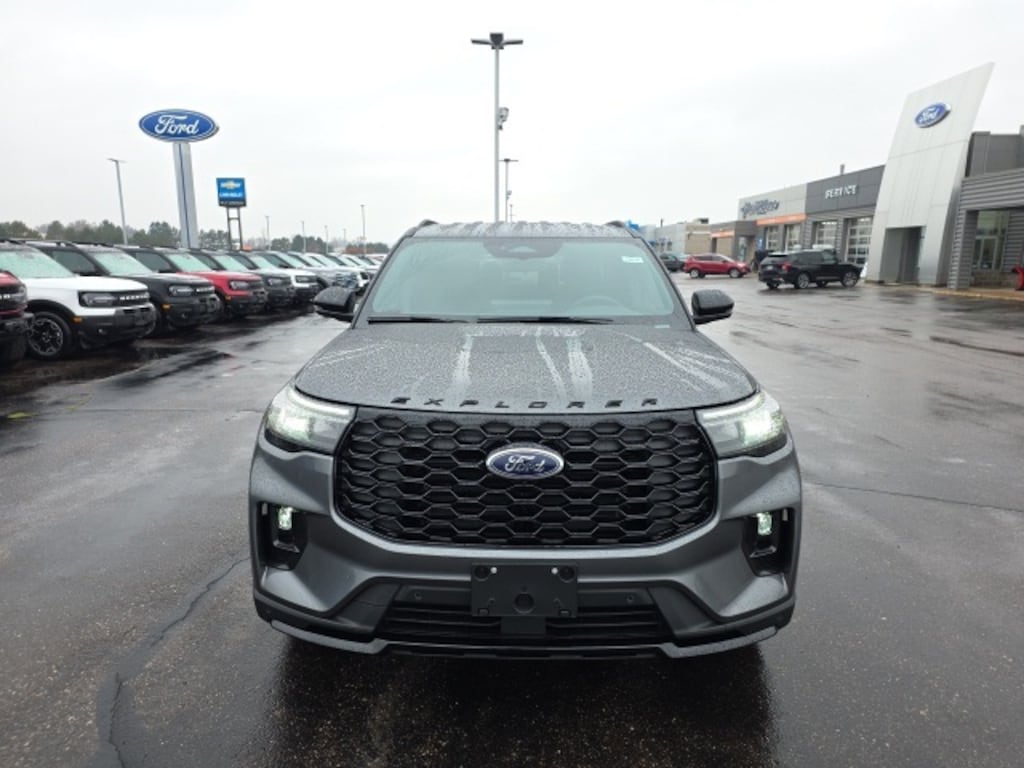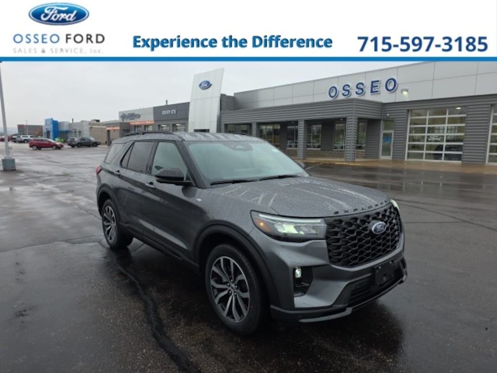 Osseo Ford is excited to offer this great 2026 Ford Explorer Active in Carbonized Gray Metallic, beautifully equipped with Active Comfort Package (Front Fascia, Heated ActiveX Seating Material Captain's Chairs, Heated Steering Wheel, Remote Start System, and Second Row Hvac Controls), Equipment Group 200A Standard Package (8 USB Ports, Active Badging, Active Noise Cancellation, AM/FM Stereo, Black Lower Bodyside Cladding with Chrome Accent, Black Roof-Rack Side Rails, Manual-Folding Sideview Mirrors, Power Liftgate, Vinyl-Wrapped Steering Wheel, and Wheels: 18" Sparkle Silver-Painted Aluminum), 4WD, 3rd row seats: bench, 4-Wheel Disc Brakes, 6 Speakers, ABS brakes, Air Conditioning, Alloy wheels, AM/FM radio: SiriusXM with 360L, Apple CarPlay/Android Auto, Auto High-beam Headlights, Automatic temperature control, Brake assist, Bumpers: body-color, Compass, Delay-off headlights, Driver door bin, Driver vanity mirror, Dual front impact airbags, Dual front side impact airbags, Electronic Stability Control, Emergency communication system: 911 Assist, Exterior Parking Camera Rear, Four wheel independent suspension, Front and Second Rows Floor Liners Without Floor Mats, Front anti-roll bar, Front Bucket Seats, Front Center Armrest, Front dual zone A/C, Front License Plate Bracket, Front reading lights, Fully automatic headlights, Heated door mirrors, Illuminated entry, Internet access capable: FordPass Connect 5G, Knee airbag, Low tire pressure warning, Navigation System, Occupant sensing airbag, Outside temperature display, Overhead airbag, Overhead console, Panic alarm, Panoramic Fixed Glass Roof with Power Shade, Passenger door bin, Passenger vanity mirror, Power driver seat, Power steering, Power windows, Rear air conditioning, Rear anti-roll bar, Rear reading lights, Rear window defroster, Rear window wiper, Remote keyless entry, SecuriCode Keyless Entry Keypad, Security system, Speed control, Speed-sensing steering, Speed-Sensitive Wipers, Split folding rear seat, Spoiler, Steering wheel mounted audio controls, Tachometer, Telescoping steering wheel, Tilt steering wheel, Traction control, Trip computer, Unique Cloth Captain's Chairs, Variably intermittent wipers, and Wheels: 20" Carbonized Gray-Painted Aluminum! Carbonized Gray Metallic 2026 Ford Explorer Active 4WD 10-Speed Automatic 2.3L EcoBoost I-4 4WD.
