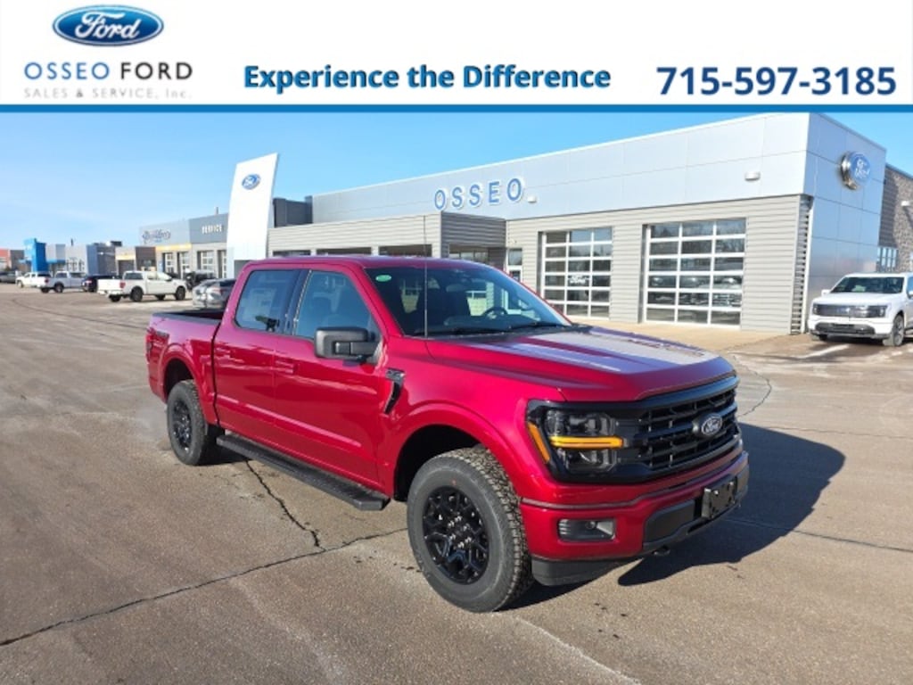 Osseo Ford is excited to offer this dependable 2026 Ford F-150 XLT in Ruby Red Metallic Tinted Clearcoat, beautifully equipped with Ford Connectivity Package (1-Year Included), GVWR: 6,650 lbs Payload Package, Internet access capable: 5G Modem - Ford Connectivity Package, 4WD, 18" Painted Aluminum Wheels, 3.55 Axle Ratio, 4-Wheel Disc Brakes, 6 Speakers, ABS brakes, Air Conditioning, Alloy wheels, AM/FM radio: SiriusXM with 360L, Auto High-beam Headlights, Brake assist, Bumpers: body-color, Compass, Delay-off headlights, Driver door bin, Driver vanity mirror, Dual front impact airbags, Dual front side impact airbags, Electronic Stability Control, Emergency communication system: SYNC 4 911 Assist, Front anti-roll bar, Front Center Armrest, Front fog lights, Front reading lights, Front wheel independent suspension, Fully automatic headlights, Heated door mirrors, Illuminated entry, Low tire pressure warning, Occupant sensing airbag, Outside temperature display, Overhead airbag, Overhead console, Panic alarm, Passenger door bin, Passenger vanity mirror, Power door mirrors, Power steering, Power windows, Radio data system, Radio: AM/FM Stereo with SiriusXM 360L, Rear Parking Sensors, Rear reading lights, Rear step bumper, Rear window defroster, Remote keyless entry, Security system, Speed control, Split folding rear seat, Steering wheel mounted audio controls, SYNC 4 with Enhanced Voice Recognition, Tachometer, Telescoping steering wheel, Tilt steering wheel, Traction control, Trip computer, and Variably intermittent wipers! Ruby Red Metallic Tinted Clearcoat 2026 Ford F-150 XLT 4WD 10-Speed Automatic 2.7L V6 EcoBoost 4WD.