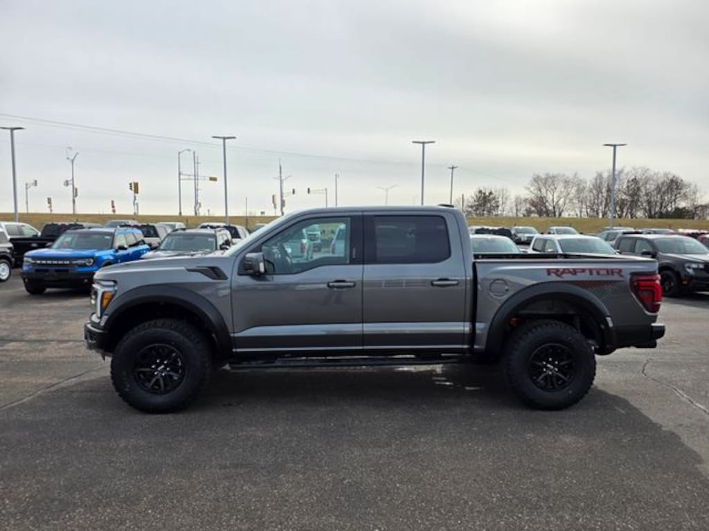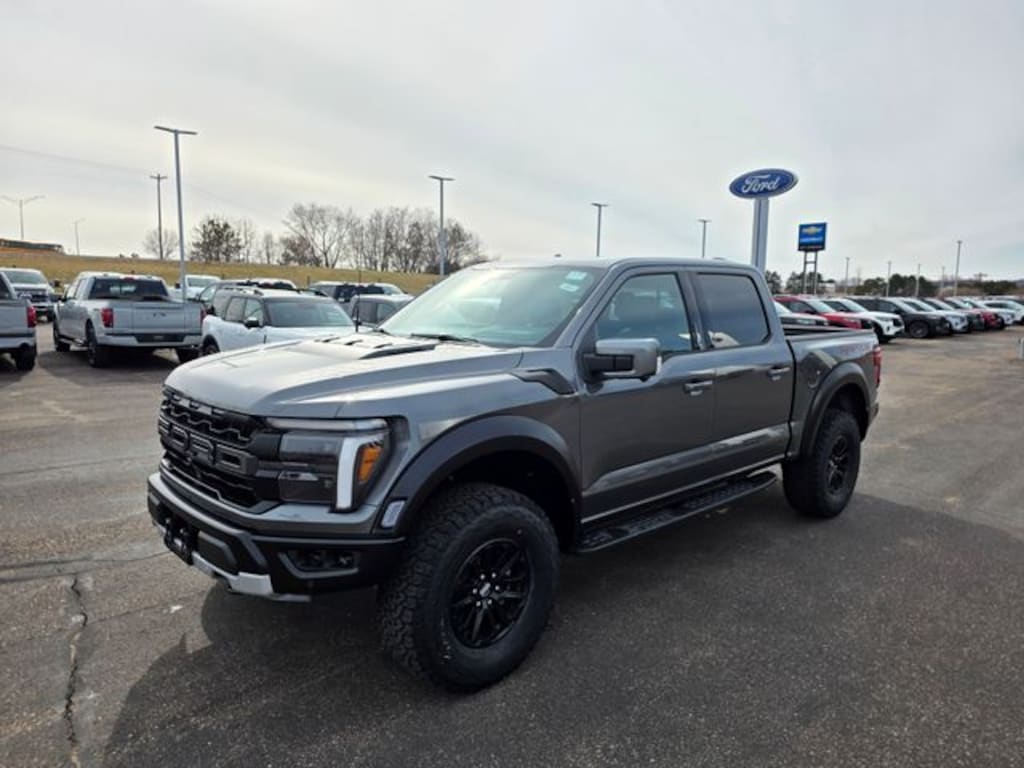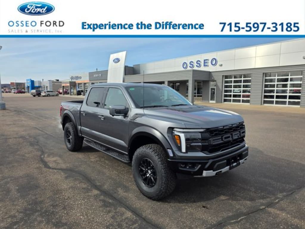 Osseo Ford is proud to offer this reliable 2026 Ford F-150 Raptor in Carbonized Gray Metallic, beautifully equipped with Equipment Group 801A Standard (17" Cast Aluminum Wheels, Electronic Locking with 4.10 Axle Ratio, Leather Trimmed Seats, Radio: B&O Unleashed Sound System by Bang & Olufsen, and SYNC 4 with Enhanced Voice Recognition), Ford Connectivity Package (1-Year Included), Internet access capable: 5G Modem - Ford Connectivity Package, 4WD, 14 Speakers, 4-Wheel Disc Brakes, ABS brakes, Adjustable pedals, Air Conditioning, Alloy wheels, AM/FM radio: SiriusXM with 360L, Auto High-beam Headlights, Auto tilt-away steering wheel, Auto-dimming door mirrors, Auto-dimming Rear-View mirror, Automatic temperature control, Brake assist, Bumpers: body-color, Compass, Delay-off headlights, Driver door bin, Driver vanity mirror, Driver's Side SecuriCode Keyless-Entry Keypad, Dual front impact airbags, Dual front side impact airbags, Electronic Stability Control, Emergency communication system: SYNC 4 911 Assist, Front anti-roll bar, Front Bucket Seats, Front Center Armrest, Front dual zone A/C, Front fog lights, Front License Plate Bracket, Front reading lights, Front wheel independent suspension, Fully automatic headlights, Garage door transmitter, Heads-Up Display, Heated door mirrors, Heated front seats, Heated rear seats, Heated steering wheel, Illuminated entry, Lane Departure Warning System, Leather steering wheel, Low tire pressure warning, Memory seat, Navigation system: Connected Navigation, Occupant sensing airbag, Outside temperature display, Overhead airbag, Overhead console, Panic alarm, Passenger door bin, Passenger vanity mirror, Pedal memory, Power door mirrors, Power driver seat, Power passenger seat, Power steering, Power windows, Radio data system, Rain sensing wipers, Rear reading lights, Rear step bumper, Rear window defroster, Remote keyless entry, Security system, Speed control, Speed-sensing steering, Split folding rear seat, Steering wheel memory, Steering wheel mounted audio controls, Tachometer, Telescoping steering wheel, Tilt steering wheel, Traction control, Trip computer, Turn signal indicator mirrors, Twin Panel Moonroof, Variably intermittent wipers, and Ventilated front seats! Carbonized Gray Metallic 2026 Ford F-150 Raptor 4WD 10-Speed Automatic 3.5L V6 EcoBoost High Output 4WD.