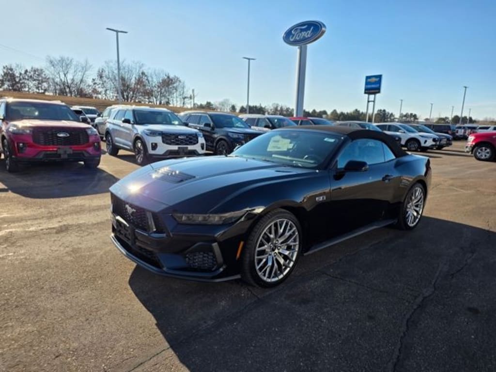 Osseo Ford is very proud to offer this handsome-looking 2026 Ford Mustang GT Premium in Shadow Black, beautifully equipped with Anti-Theft Package (Active Anti-Theft System), Equipment Group 401A High Package (Aluminum Foot Pedals, AM/FM Stereo, Driver Seat Memory with 3 Settings, HD Radio, Leather-Trimmed Bucket Seats with Color Accents, Perimeter Alarm, SiriusXM with 360L, SYNC 4, and Wheels: 19" x 8.5" Shadow Silver-Painted Aluminum), 4-Wheel Disc Brakes, 9 Speakers, ABS brakes, Active Valve Performance Exhaust, ActiveX Trimmed Bucket Seats, Air Conditioning, Alloy wheels, AM/FM radio: SiriusXM with 360L, Auto High-beam Headlights, Auto-dimming Rear-View mirror, Automatic temperature control, B&O Sound System by Bang & Olufsen with 12 Speakers, Brake assist, Bumpers: body-color, Climate Controlled Heated/Cooled Front Seats, Compass, Convertible roof lining, Delay-off headlights, Driver door bin, Driver vanity mirror, Dual front impact airbags, Dual front side impact airbags, Electronic Stability Control, Emergency communication system: 911 Assist, Exterior Parking Camera Rear, Floor Mats, 1st Row, Black with City Silver GT Logo, Four wheel independent suspension, Front anti-roll bar, Front Bucket Seats, Front Center Armrest, Front dual zone A/C, Front reading lights, Fully automatic headlights, Glass rear window, Heated front seats, Heated steering wheel, Illuminated entry, Knee airbag, Leather Shift Knob, Leather steering wheel, Low tire pressure warning, Occupant sensing airbag, Outside temperature display, Overhead console, Panic alarm, Passenger door bin, Passenger vanity mirror, Power convertible roof, Power door mirrors, Power driver seat, Power passenger seat, Power steering, Power windows, Premium Floor Liners Front and Rear (with Carpet Mats), Radio data system, Rain sensing wipers, Rear anti-roll bar, Rear Parking Sensors, Rear window defroster, Remote keyless entry, Security system, Speed control, Speed-sensing steering, Speed-Sensitive Wipers, Sport steering wheel, Steering wheel mounted audio controls, Tachometer, Telescoping steering wheel, Tilt steering wheel, Traction control, Trip computer, Variably intermittent wipers, Ventilated front seats, Voltmeter, and Wheels: 20" x 9" Premium-Painted Aluminum! Shadow Black 2026 Ford Mustang GT Premium RWD 10-Speed Automatic 5.0L V8 Ti-VCT Price includes: $1500 - Retail Customer Cash. Exp. 04/30/2026
