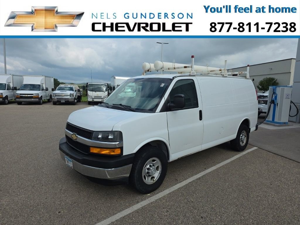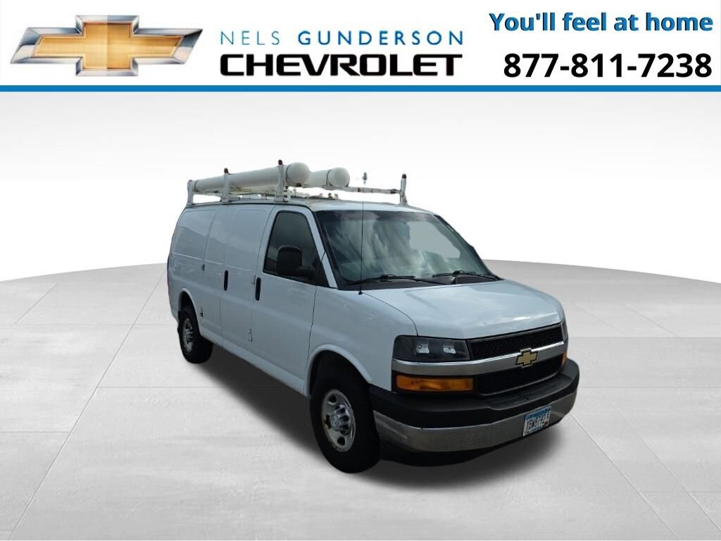 Nels Gunderson Chevrolet is very proud to offer this stunning 2017 Chevrolet Express 3500 Work Van in Summit White, beautifully equipped with Chrome Appearance Package (Chrome Grille, Dual Composite Halogen Headlamps, and Front & Rear Chrome Bumpers w/Step-Pad), Convenience Package (Cruise Control and Tilt Steering Wheel), Heavy-Duty Trailering Equipment, Preferred Equipment Group 1WT, 150 Amp Alternator, 16 x 6.5 Steel Wheels, 2 Speakers, 3.42 Rear Axle Ratio, 4-Wheel Disc Brakes, ABS brakes, Air Conditioning, AM/FM radio, AM/FM Stereo w/MP3 Player, Delay-off headlights, Driver & Front Passenger High-Back Bucket Seats, Driver & Front Passenger Vinyl Visors, Driver & Right Front Passenger Frontal Airbags, Driver door bin, Driver's Seat Mounted Armrest, Dual front impact airbags, Dual front side impact airbags, Electronic Stability Control, Engine Cover Console w/Swing-Out Storage Bin, Front anti-roll bar, Front Bucket Seats, Front Reclining High-Back Bucket Seats, Front wheel independent suspension, Full-Length Black Rubberized-Vinyl Floor Covering, Fully automatic headlights, Heavy-Duty Rear Locking Differential, Inside Rearview Mirror w/Rr Vision Camera Display, Low tire pressure warning, Occupant sensing airbag, Overhead airbag, Passenger cancellable airbag, Passenger door bin, Passenger seat mounted armrest, Power steering, Power windows, Power-Adjustable Black Outside Heated Mirrors, Rear Vision Camera, Reclining Front Bucket Seats w/Inboard Armrests, Remote Keyless Entry, Single-Zone Manual Air Conditioning, Tachometer, Traction control, Trip computer, USB Port Audio System Feature, Variably intermittent wipers, Vinyl Seat Trim, and Voltmeter.