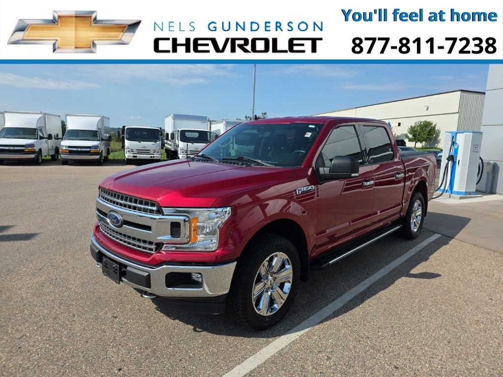 Nels Gunderson Chevrolet is honored to offer this trusty 2019 Ford F-150 XLT in Ruby Red Metallic Tinted Clearcoat, beautifully equipped with GVWR: 6,600 lbs Payload Package, Trailer Tow Package (Class IV Trailer Hitch Receiver and Pro Trailer Backup Assist), 4WD, 110V/400W Outlet, 3.55 Axle Ratio, 4-Wheel Disc Brakes, ABS brakes, Air Conditioning, Auto High-beam Headlights, Brake assist, Compass, Delay-off headlights, Driver door bin, Dual front impact airbags, Dual front side impact airbags, Electronic Stability Control, Extended Range 36 Gallon Fuel Tank, Exterior Parking Camera Rear, Front anti-roll bar, Front wheel independent suspension, Fully automatic headlights, Low tire pressure warning, Occupant sensing airbag, Outside temperature display, Overhead airbag, Passenger door bin, Passenger vanity mirror, Power steering, Radio: AM/FM Stereo w/6 Speakers, Rear step bumper, Reverse Sensing System, SiriusXM Radio, Speed-sensing steering, Split folding rear seat, SYNC 3, Tachometer, Tailgate Step w/Tailgate Lift Assist, Telescoping steering wheel, Tilt steering wheel, Traction control, Variably intermittent wipers, and Voltmeter. 4WD.