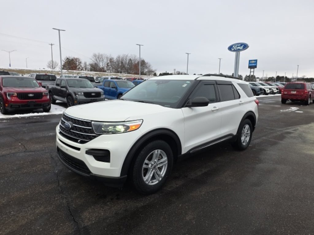 Osseo Ford is delighted to offer this great-looking 2022 Ford Explorer XLT in White, beautifully equipped with Equipment Group 200A, 1st Row Heated Seats, 3.58 Non-Limited-Slip Rear Axle Ratio, 3rd row seats: bench, 4-Wheel Disc Brakes, 6 Speakers, ABS brakes, Air Conditioning, Alloy wheels, AM/FM radio: SiriusXM, AM/FM Stereo, Auto High-beam Headlights, Auto Start-Stop Removal, Automatic temperature control, Brake assist, Bumpers: body-color, Compass, Delay-off headlights, Driver door bin, Driver vanity mirror, Dual front impact airbags, Dual front side impact airbags, Electronic Stability Control, Emergency communication system: SYNC 3 911 Assist, Exterior Parking Camera Rear, FordPass Connect, Four wheel independent suspension, Front anti-roll bar, Front Bucket Seats, Front Center Armrest, Front dual zone A/C, Front reading lights, Fully automatic headlights, Heated door mirrors, Heated front seats, Illuminated entry, Knee airbag, Leather steering wheel, Low tire pressure warning, Occupant sensing airbag, Outside temperature display, Overhead airbag, Overhead console, Panic alarm, Passenger door bin, Passenger vanity mirror, Power door mirrors, Power driver seat, Power Liftgate, Power passenger seat, Power steering, Power windows, Rear air conditioning, Rear anti-roll bar, Rear reading lights, Rear window defroster, Rear window wiper, Remote keyless entry, Roof rack: rails only, Security system, Speed control, Speed-sensing steering, Speed-Sensitive Wipers, Split folding rear seat, Spoiler, Steering wheel mounted audio controls, SYNC 3 Communications & Entertainment System, SYNC 3/Apple CarPlay/Android Auto, Tachometer, Telescoping steering wheel, Tilt steering wheel, Traction control, Trip computer, Unique Cloth Captain's Chairs, Variably intermittent wipers, and Wheels: 18" 5-Spoke Silver-Painted Aluminum! CLEAN AUTO CHECK, LOCAL TRADE, Equipment Group 200A. Recent Arrival! Priced below KBB Fair Purchase Price! 21/28 City/Highway MPG