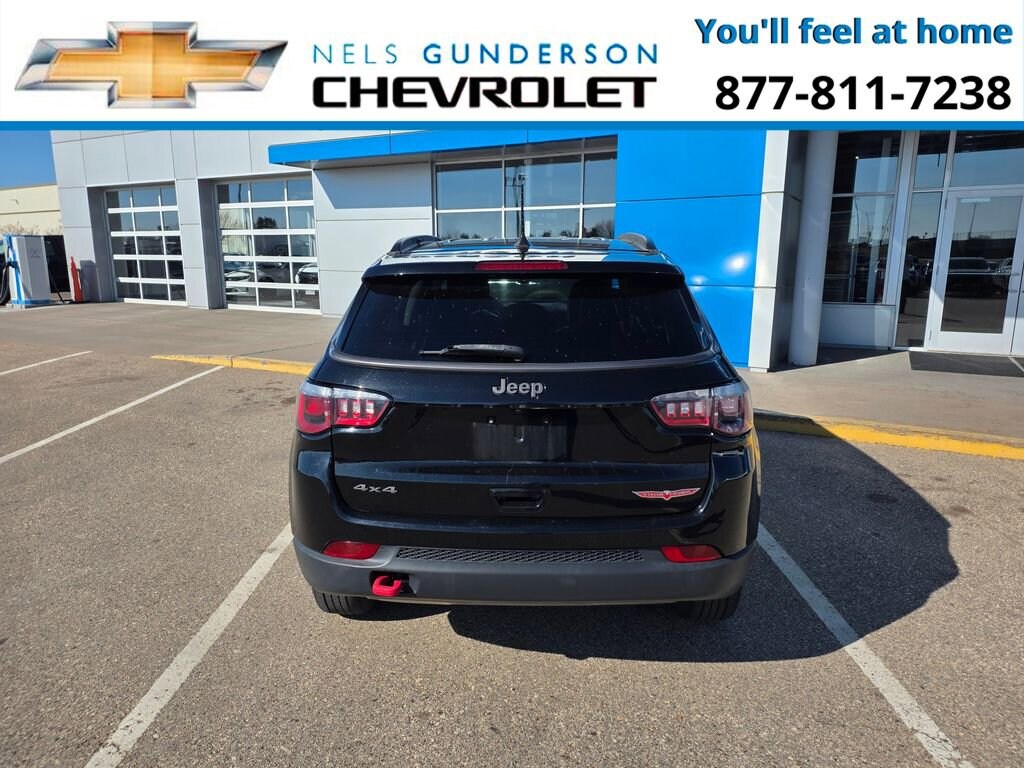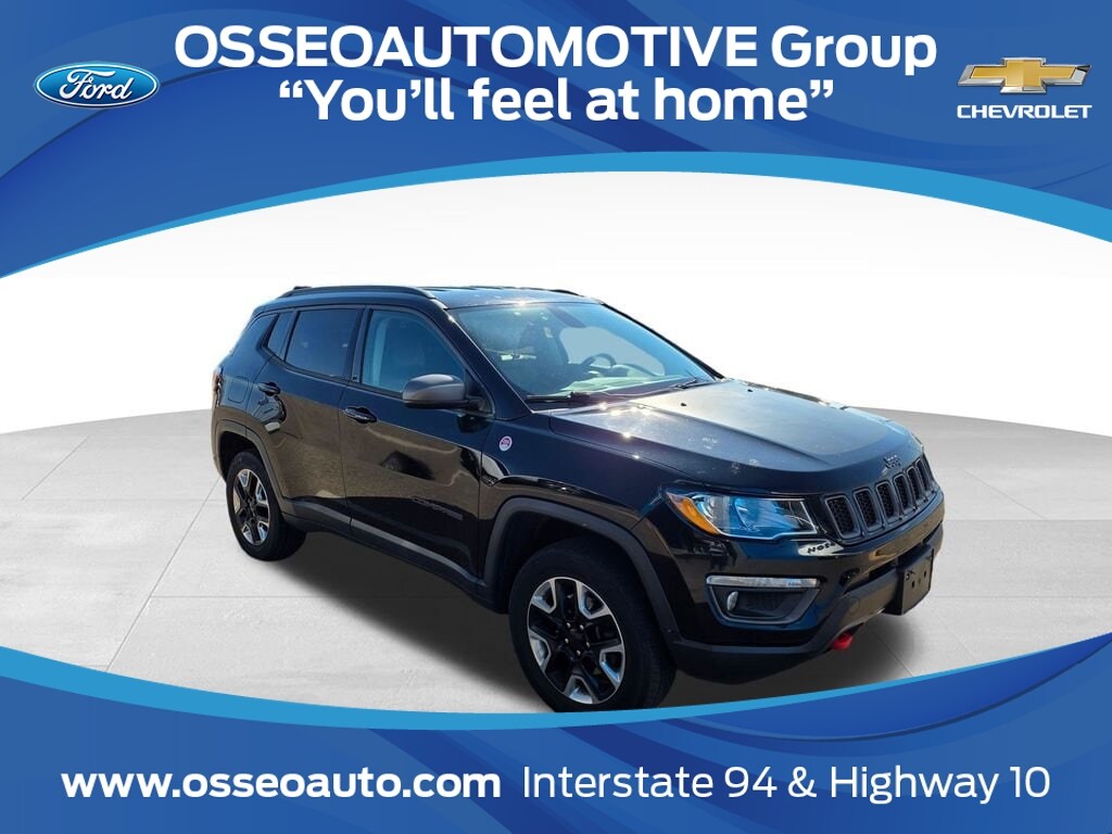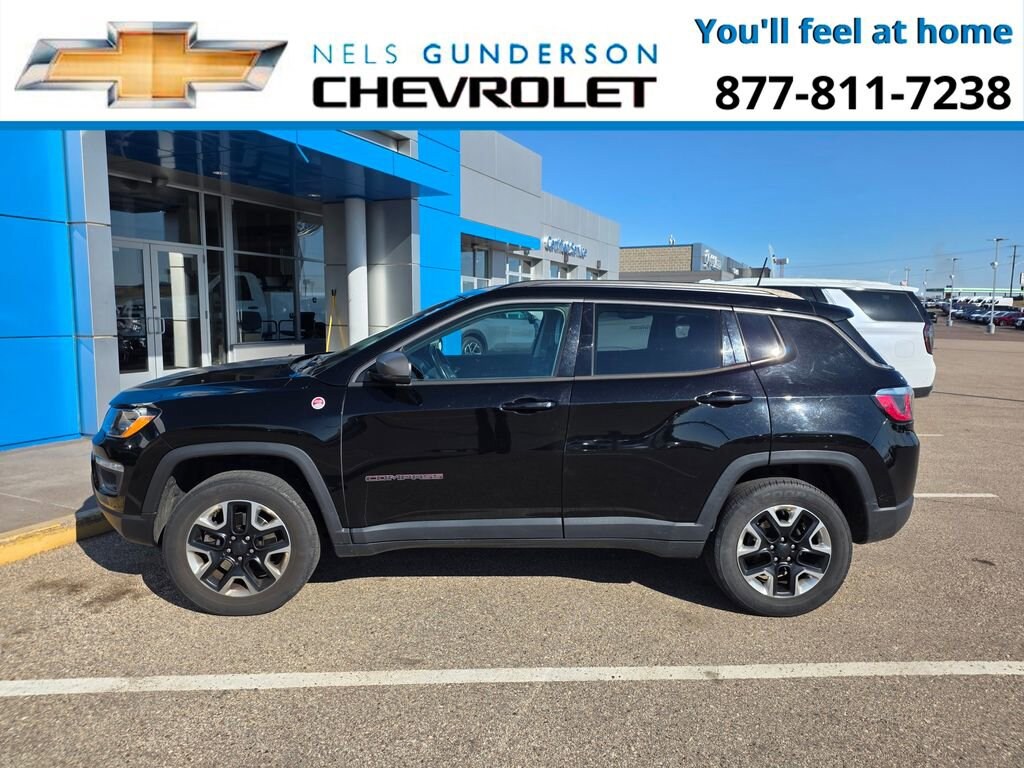 Nels Gunderson Chevrolet is delighted to offer this fantastic 2018 Jeep Compass Trailhawk in Diamond Black Crystal Pearlcoat, beautifully equipped with Leather Interior Group (4-Way Power Lumbar Adjust, Auto-Dimming Rear-View Mirror, Heated Front Seats, Heated Steering Wheel, Leather w/Perforated Insert Bucket Seats, Leather Wrapped Steering Wheel, Power 8-Way Driver/Manual 6-Way Passenger Seats, Remote Start System, and Windshield Wiper De-Icer), Quick Order Package 27E, 4WD, 4-Wheel Disc Brakes, 4.334 Axle Ratio, 6 Speakers, ABS brakes, Air Conditioning, Alloy wheels, AM/FM radio: SiriusXM, Anti-whiplash front head restraints, Apple CarPlay/Android Auto, Automatic temperature control, Brake assist, Bumpers: body-color, Compass, Delay-off headlights, Driver door bin, Driver vanity mirror, Dual front impact airbags, Dual front side impact airbags, Electronic Stability Control, Four wheel independent suspension, Front anti-roll bar, Front Bucket Seats, Front Center Armrest w/Storage, Front dual zone A/C, Front fog lights, Front reading lights, Fully automatic headlights, Heated door mirrors, Illuminated entry, Knee airbag, Leather Shift Knob, Low tire pressure warning, Manufacturer's Statement of Origin, Occupant sensing airbag, Outside temperature display, Overhead airbag, Overhead console, Panic alarm, ParkView Rear Back-Up Camera, Passenger door bin, Passenger vanity mirror, Power door mirrors, Power steering, Power windows, Premium Cloth/Leather Trim Bucket Seats, Radio: Uconnect 4 w/8.4 Display, Rear anti-roll bar, Rear seat center armrest, Rear window defroster, Rear window wiper, Remote keyless entry, Roof rack: rails only, Speed control, Split folding rear seat, Spoiler, Steering wheel mounted audio controls, Tachometer, Telescoping steering wheel, Tilt steering wheel, Traction control, Trip computer, Turn signal indicator mirrors, Variably intermittent wipers, and Wheels: 17 x 6.5 Polished/Black Pockets Aluminum. 4WD. Recent Arrival! 22/30 City/Highway MPGAwards:* 2018 KBB.com 10 Best All-Wheel-Drive Vehicles Under $25,000 * 2018 KBB.com 10 Most Awarded Brands 2018 Jeep Compass Trailhawk You'll Feel at Home!! www.osseoauto.com.